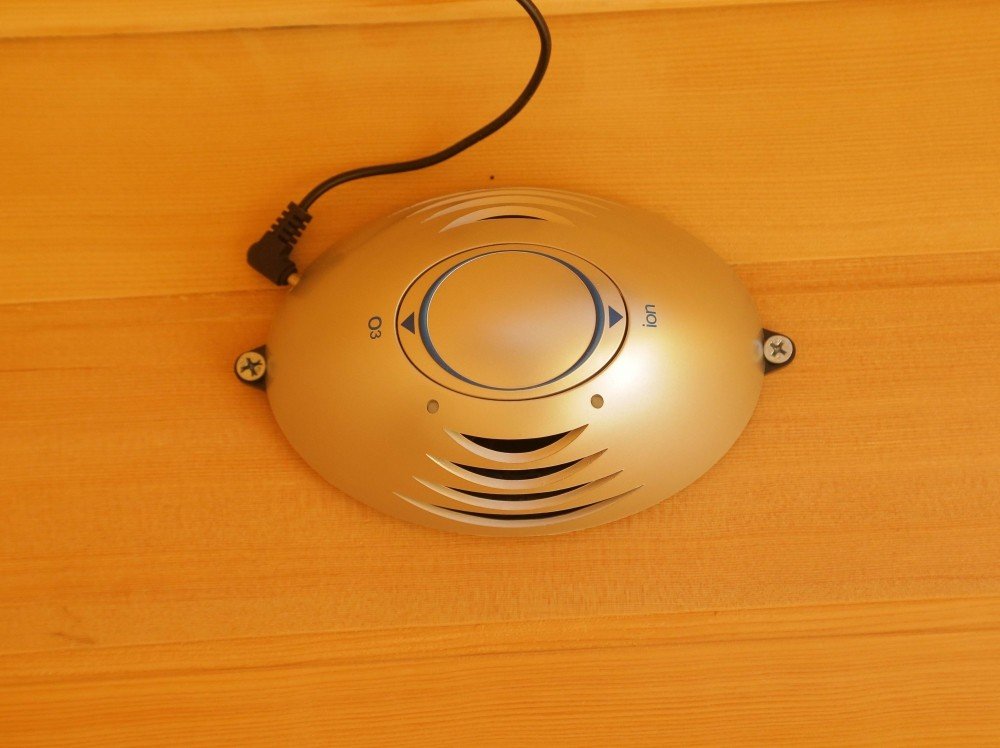 Ionizátor zlepšuje kvalitu vzduchu v sauně přidáním záporných iontů (aniontů), které připomínají čerstvý horský nebo mořský vzduch. Eliminuje prach, kouř, pyl i bakterie.