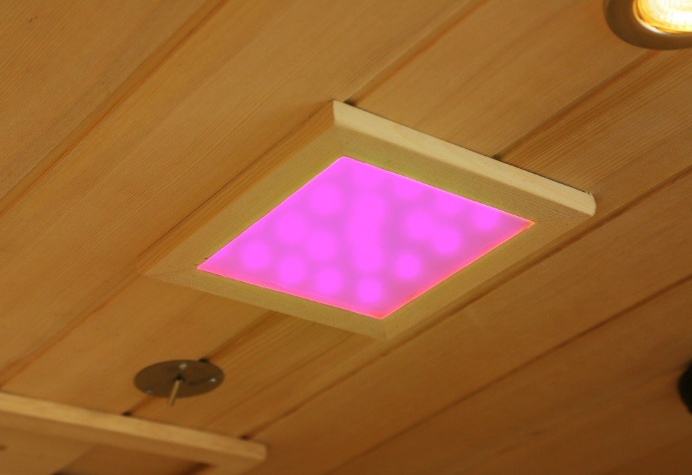 Světlo má výrazný vliv na naši psychiku a náladu. LED světelná terapie v saunách Belatrix využívá LED pásek po obvodu stříšky, který umožňuje volit z 7 barevných režimů přímo na ovládacím panelu.