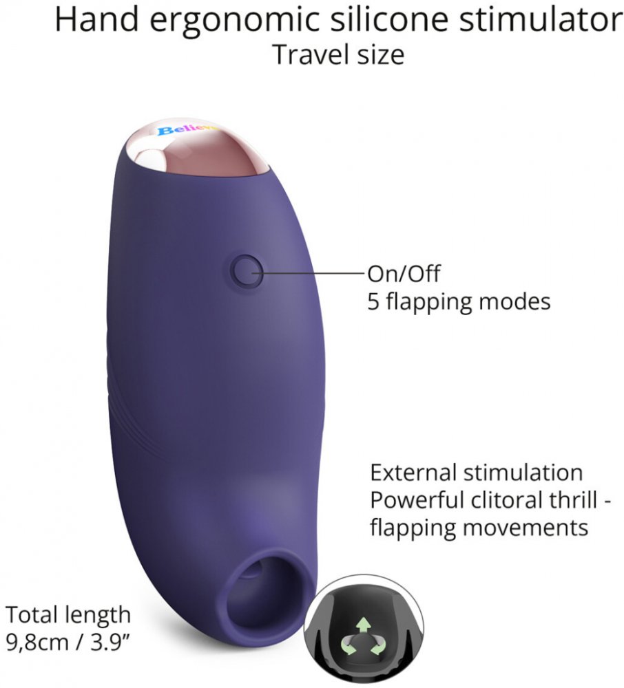 9.8 cm 70.0 g s hladkým povrchem abs, silikon Believer pro ženy stimulátor hráze / vulvy pouze tlačítka na zařízení vnitřní dobíjecí baterie IPX7 47.0 dB středně hlasité 85.0 minut 1.25 hodin magnetické