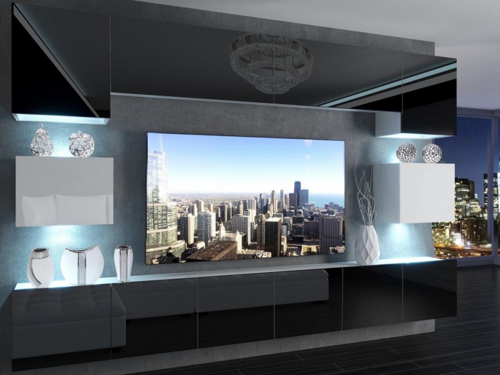 Obývací stěna Imperium 3 - černý lesk / bílý lesk / černý lesk