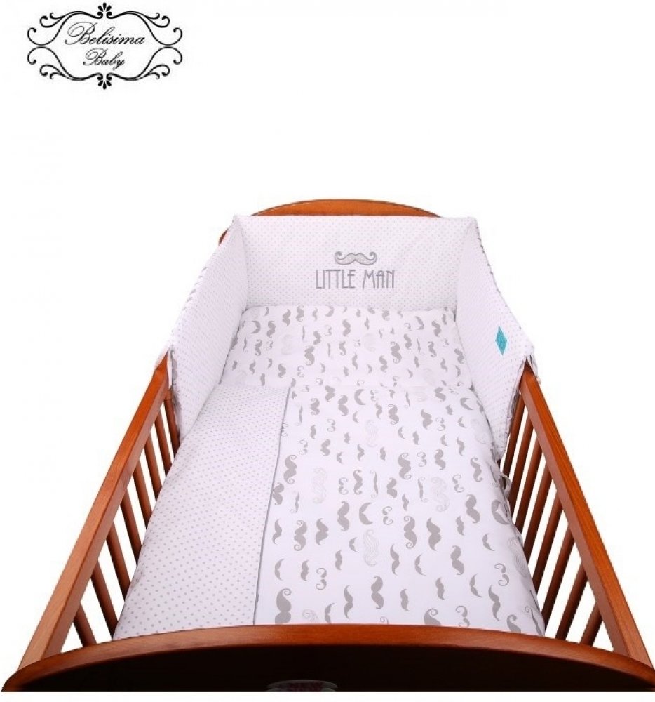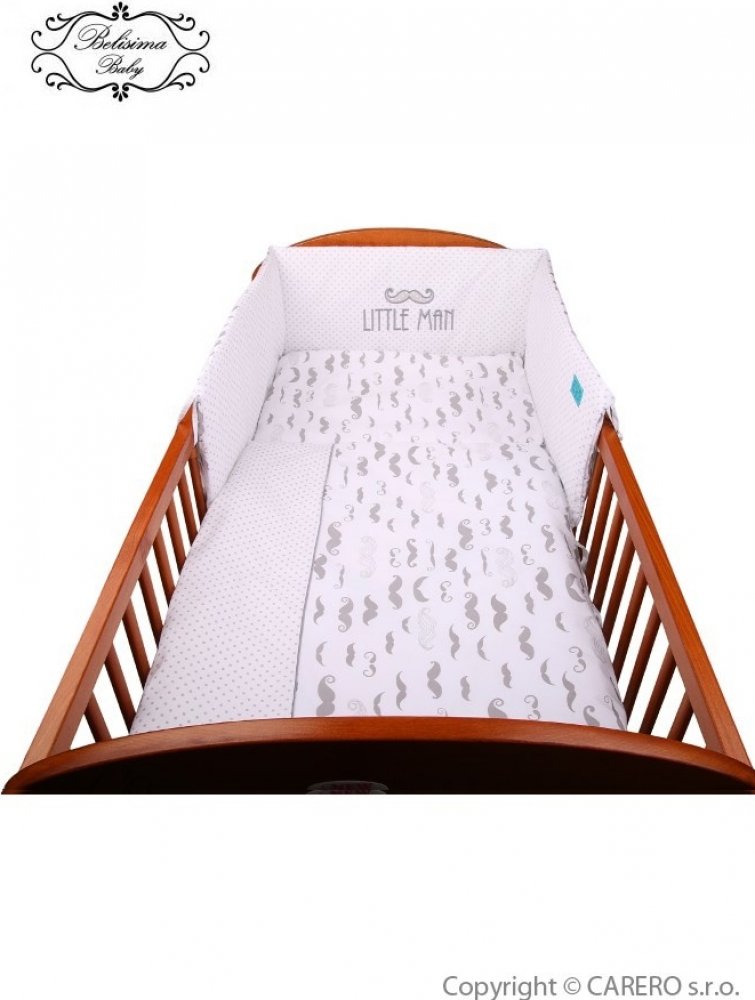 Dětská bavlněná 5-dílná souprava do postýlky Belisima Little Man pro miminka. Soupravu zdobí originální obrázký knírů a příjemné barvy. Je vyrobena z měkkého, příjemného materiálu.