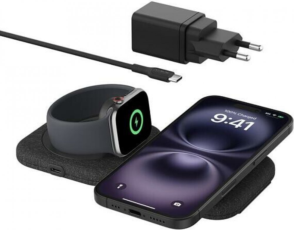 Pohodlně a rychle nabíjejte dvě zařízení současně (iPhone nebo AirPods a Apple Watch) pomocí Qi2 a rychlonabíjecího modulu pro Apple Watch. Nabíjejte svůj iPhone výkonem až 15 W v horizontální poloze pro režim StandBy a hands-free sledování a zároveň Apple Watch (Series 7 až 9) a Apple Watch Ultra 1 a 2. Design vhodný na cesty je skládací, kompaktní a lehký. Výhody produktu • Rychlé nabíjení iPhon...