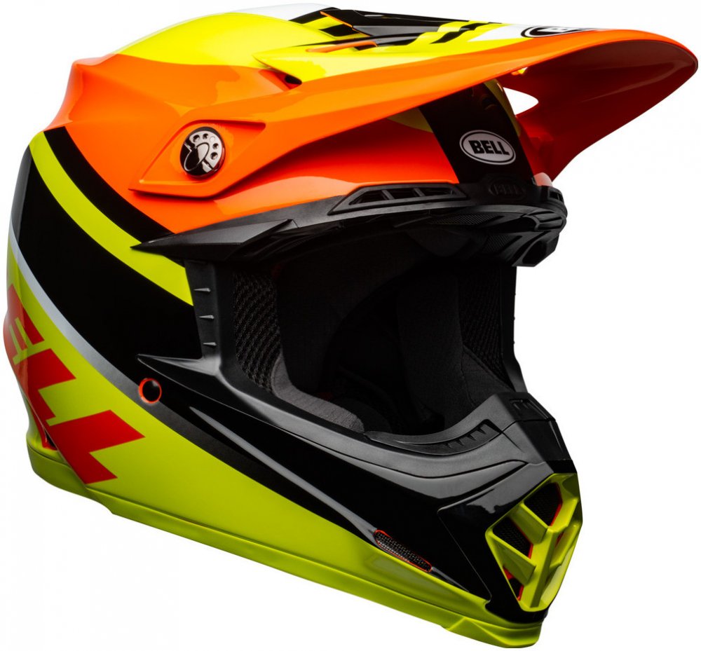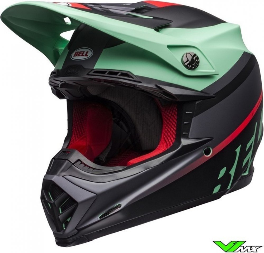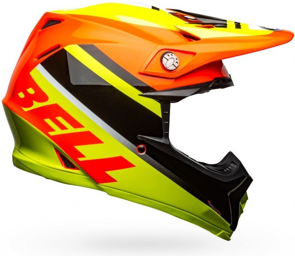 Helma na motokros BELL MOTO-9 MIPS Prophecy je špičková a bezpečná helma z kolekce americké značky BELL. Standartem je použití bezpečnostního systému MIPS pro snížení nárazové energie a zamezení poškození mozku. Technologie MIPS redukuje energii rotačního nárazu o cca 20-35% a tím snižuje riziko poškození mozku. Kompozitová konstrukce skořepiny z materiálu TriMatrix (karbon/kevlar/laminát) zajišťuje skvělou pevnost. EPS výplň helmy o rozdílné tvrdosti pro zajištění lepšího pohlcení energie při nárazu. Velmi komfortní vnitřek z materiálu X-Static pro skvělý pocit a rychlý odvod potu. Rychlo vyndavací lícnice na magnet zajistí perfektní usazení helmy na hlavu. Špičkový systém větrání zajistí přísun čerstvého vzduchu a odvod z helmy ven. Zapínání na D-kroužky. Helma BELL Moto-9 je vhodná pro motokros, enduro, čtyřkolky, supermoto. Ke každé helmě Bell Moto-9 MIPS brýle 100% Accuri zdarma !!!