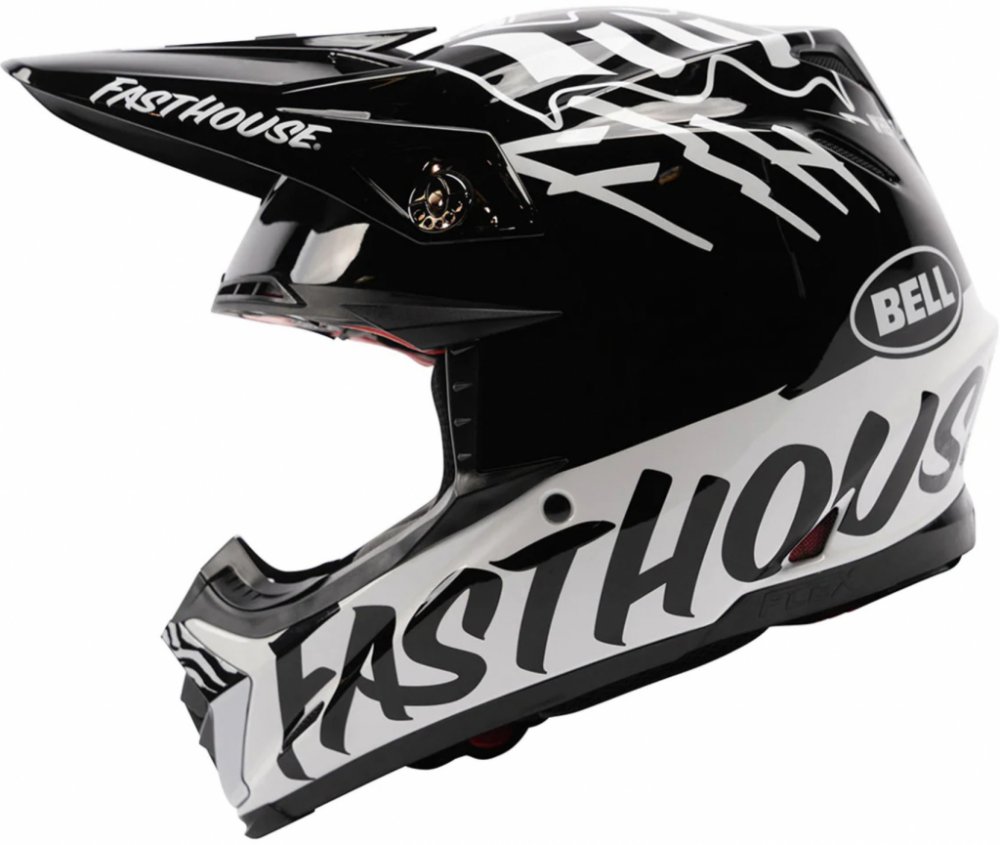 Bell Moto-9S Flex Helmet Flying Colors Black/White. Helma je vyráběná pouze ve velikostech S, M, L, a XL a je dostupná jen u výrobce Fasthouse a jeho distributorů (kterým jsme) do vyprodání.