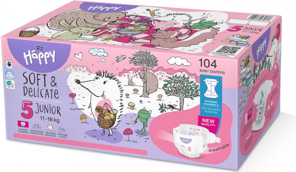 Happy Toy box ve velikosti Junior obsahuje 2 balení plen BELLA Baby Happy Soft & Delicate Junior po 52 kusech. Kartonová krabice s potiskem je použitelná jako box k uchování plen nebo dětských hraček. Dětské pleny jsou doporučeny pro děti s hmotností 11 až 18 kg. Jsou vyrobeny z nejkvalitnějších materiálů, dokonale se přizpůsobí tělu dítěte a poskytují příjemný pocit sucha. Jsou navrženy tak, aby vyhovovaly potřebám té nejcitlivější pokožky - neobsahují žádné alergeny, parfemaci a minimalizují riziko vzniku opruzenin.5Velikost11 – 18 kgHmotnost dítěte104 ksPočet ks v baleníKlíčové vlastnosti jednorázových plenek BELLA Baby Happy Junior Box (104 ks)Plenky nejsou parfemovány a jsou tedy vhodné i pro velmi citlivou pokožku miminkaAnatomicky tvarované jádro rychle vsákne vlhkost a pohltí pachyJsou vybaveny indikátorem vlhkosti, který změní barvu, a tak poznáte, že je čas vyměnit plenkuZapínání na suchý zipS motivem zvířátekVelikost 5 pro děti od 11 do 18 kgMateriály a technologieTím, že jsou...
