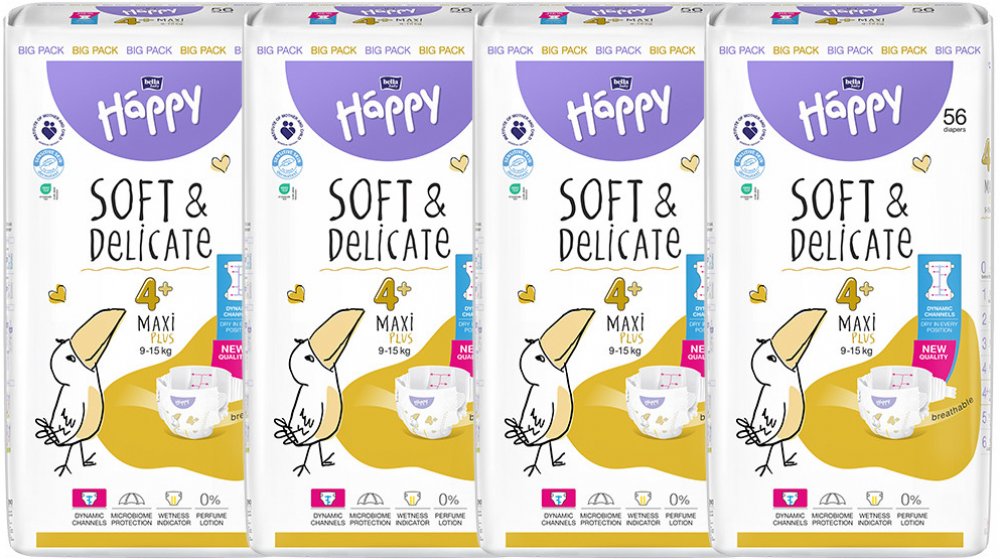 Bella Happy Soft & Delicate BigPack 4+ 9-15 kg - 4x56 ks 224 ks