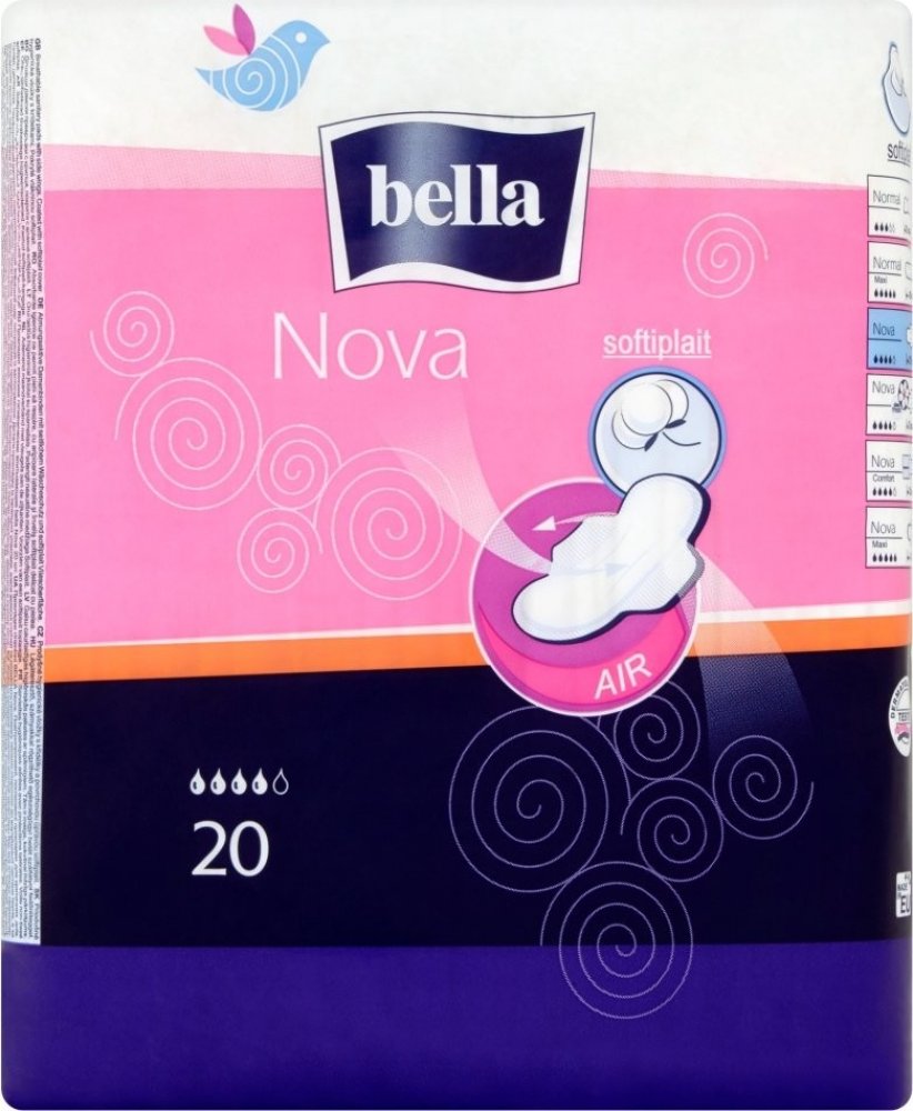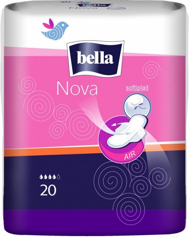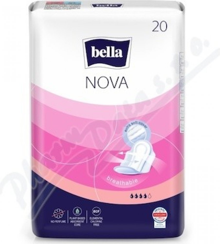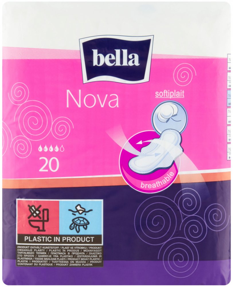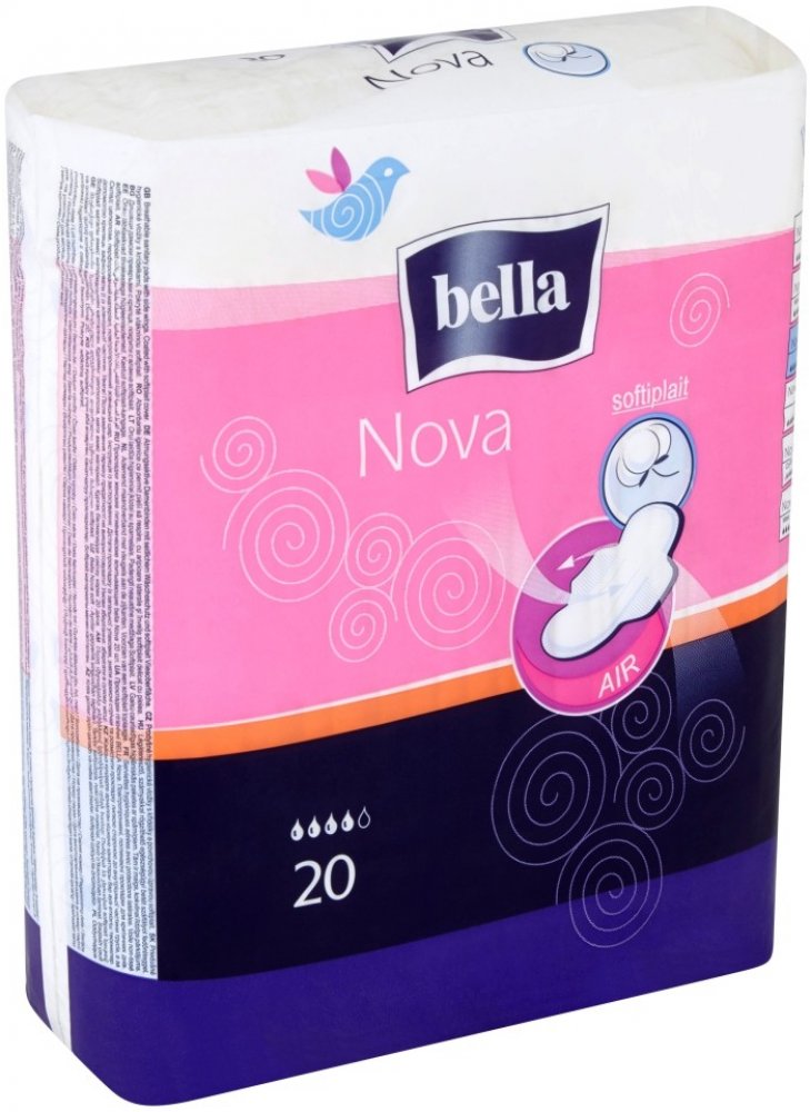Bella hygienické vložky Nova jsou výjimečně šetrné k Vaší pokožce. Díky jejich speciální struktuře prodyšná fólie dokonale chrání Vaše prádlo a současně umožňuje volný přístup vzduchu k pokožce.