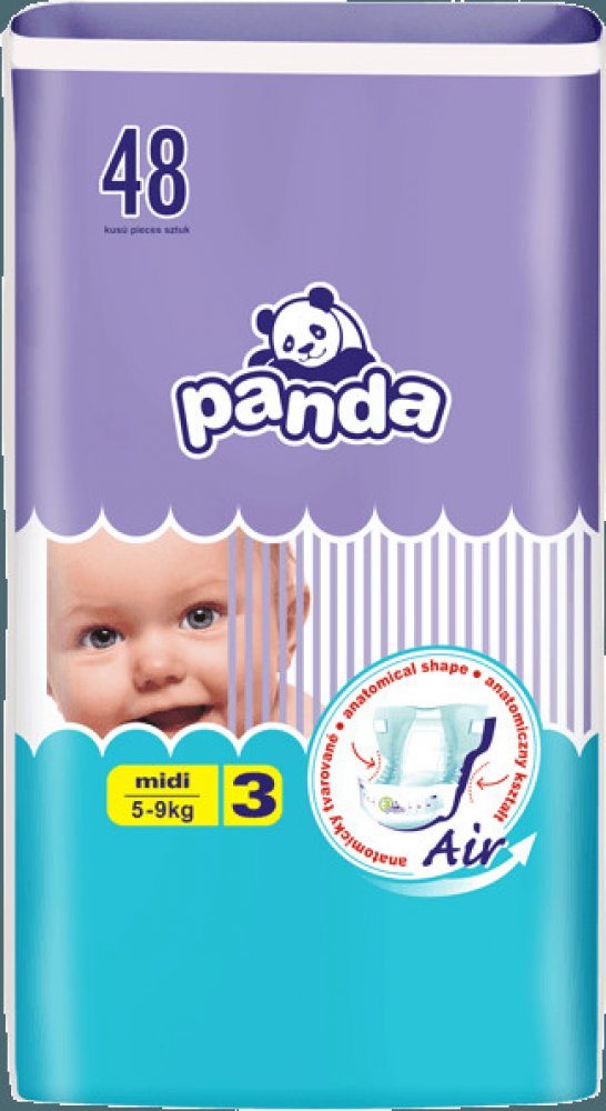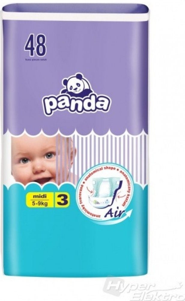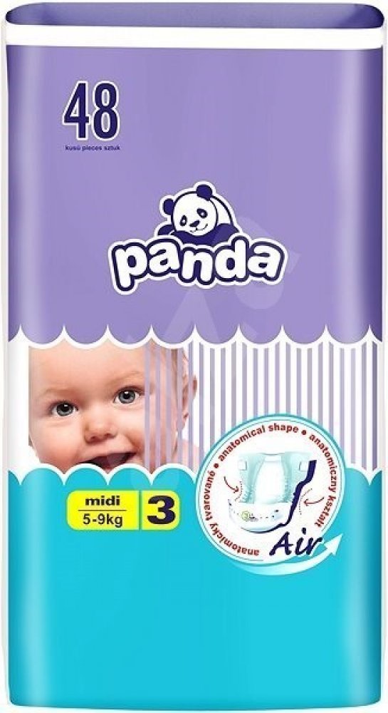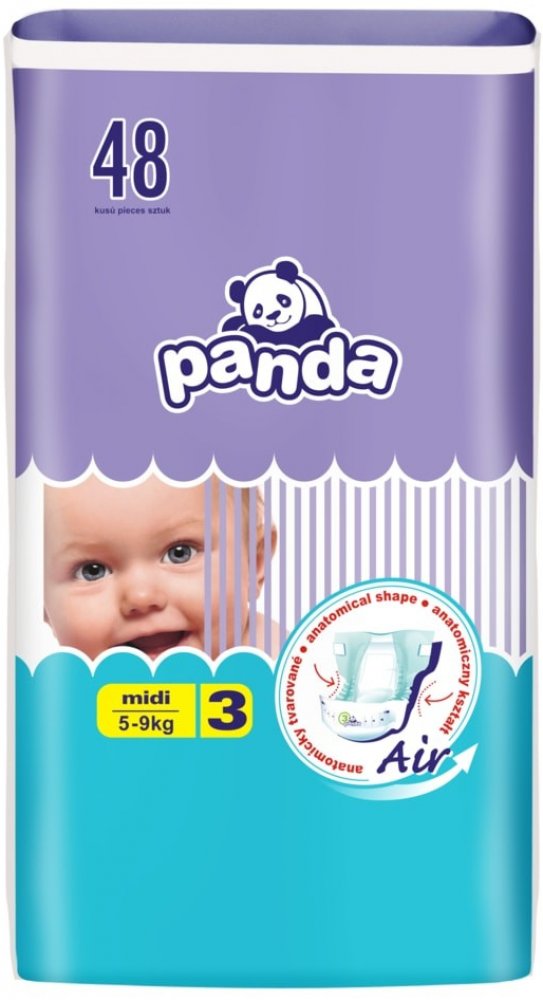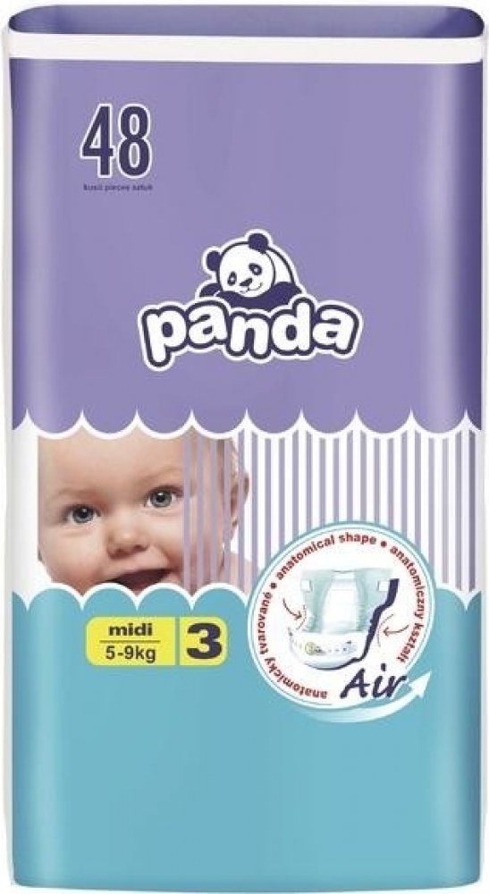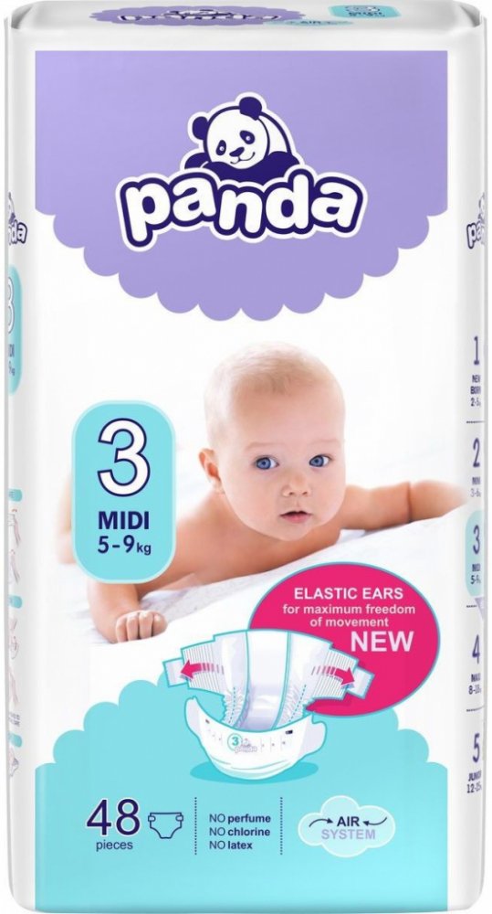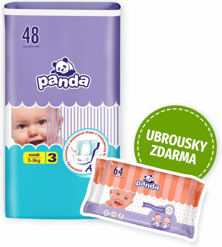 Co tomu říká sám dodavatel?Citlivou dětskou pokožku spolehlivě ochrání před vlhkem Panda jednorázové pleny Midi. Jsou určeny miminkům o hmotnosti 5-9 kg. Plenky Panda mají extra absorpční vrstu, která mění tekutinu v gel a tak zachovává pokožku miminka stále suchou. Inovativní technologie Magic Green okamžitě rozprostírá tekutinu po absorpční vrstvě. Panda plenky Midi jsou prodyšné a zároveň udržují nepříjemné pachy uvnitř. Byly navrženy tak, aby splňovaly vysoké nároky na pohyb. Speciální guma v pase a manžety po stranách se maximálně přizpůsobují dětskému tělu a při pohybu nezpůsobují odřeniny. Ve složení nenajdete chlór, ani latex. Oceníte také pružné suché zipy, které se dají opakovaně zapínat a flexibilní volánky po stranách zabraňující protečení. Plenky obsahují výtažek ze zeleného čaje, který je vysoce protizánětlivý, zabraňuje vzniku baterií a tím i nepříjemnému zápachu. V balení je 48 ks jednorázových plenek.