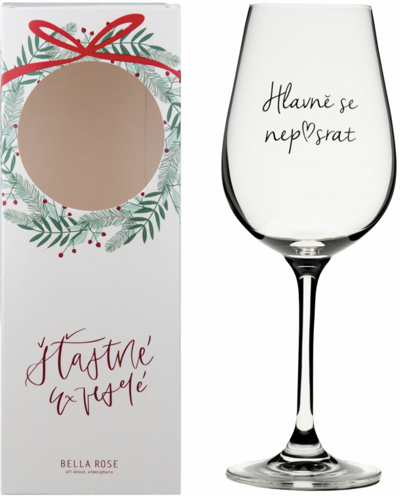 Bella Rose Sklenice na víno Hlavně se nep♥srat + vánoční krabička čirá barva sklo 350 ml