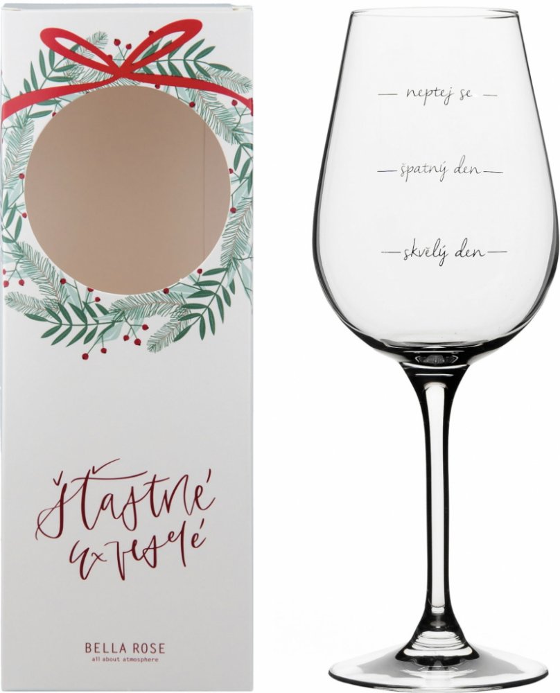 Bella Rose Sklenice na víno Neptej se! + vánoční krabička čirá barva sklo 350 ml