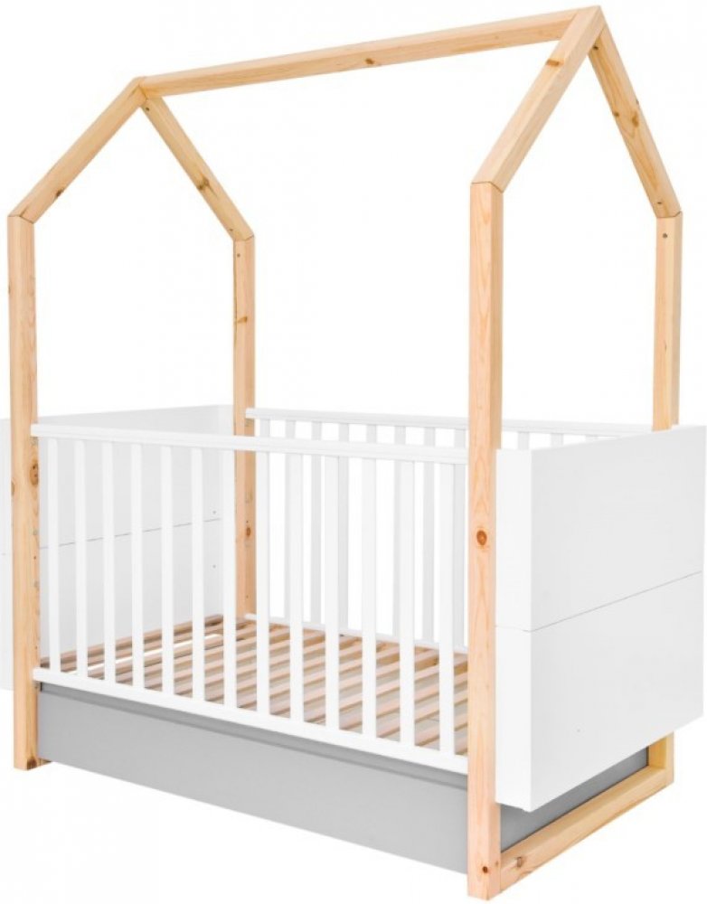 Originální dětská domečková postýlka s prostorným šuplíkem a možností předělání na dětskou postel o délce 160 cm poroste s vaší holčičkou i chlapcem. Kvalitní, výškově nastavitelná postýlka (možnost nastavit rám matrace do tří úrovní) se přizpůsobí vašim potřebám. V nejvyšší poloze je vhodná pro kojence, kteří ještě nejsou pohybově příliš aktivní, střední poloha pro sedící a lezoucí děti a ta nejnižší pro děti, které se zvládnou samostatně postavit. Po odstranění zábran zvládnou děti z postýlky pohodlně vylézt i do ní vlézt a po prodloužení se z ní stává dětská postel i pro větší děti. Postýlka i postel ve tvaru domečku není jen pohodlným místem pro kvalitní spánek a odpočinek, ale je i místem k zábavným a dobrodružným hrám. Rám postýlky můžete dozdobit nejrůznějšími závěsnými dekoracemi, lampiony i různými světýlky.