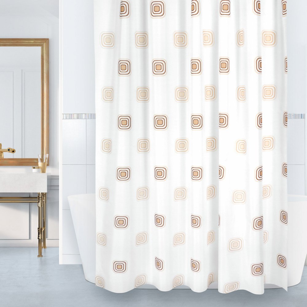 Klíčové vlastnosti produktu Bellatex 720/016 180 × 200 cm, béžové čtverce Sprchový závěs BELLATEX je určený přímo do sprchového koutu Háčky přiložené v balení zajišťují jednoduché uchycení Zhotoven z pevného polyesterového materiálu Vodoodpudivá úprava chrání před vsakováním vody Zesílené otvory pro zavěšení zvyšují odolnost Lze jej prát v pračce při maximální doporučené teplotě 30 °C Béžová barva...