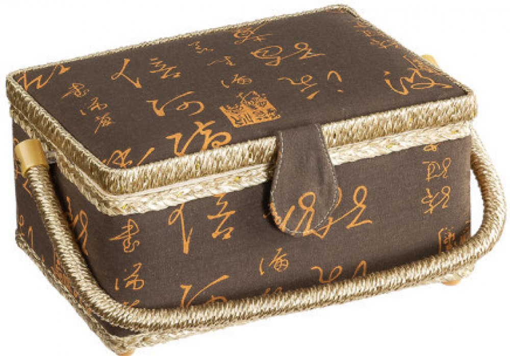 Box na šicí potřeby s uzavíráním na patent. Na vnitřní straně víka je malá praktická kapsička a „piškot“ na zapichování špendlíků a jehel.Vnitřní díl je rozdělen odnímatelnou plastickou přepážkou s praktickými přihrádkami. Velké madlo usnadňuje manipulaci. Vnitřní látka boxu je ve světle béžové barvě.Vnější rozměry (měřeno bez madla): 24 x 17,5 cm, výška 13 cm.Materiál: Plast, Bavlna.