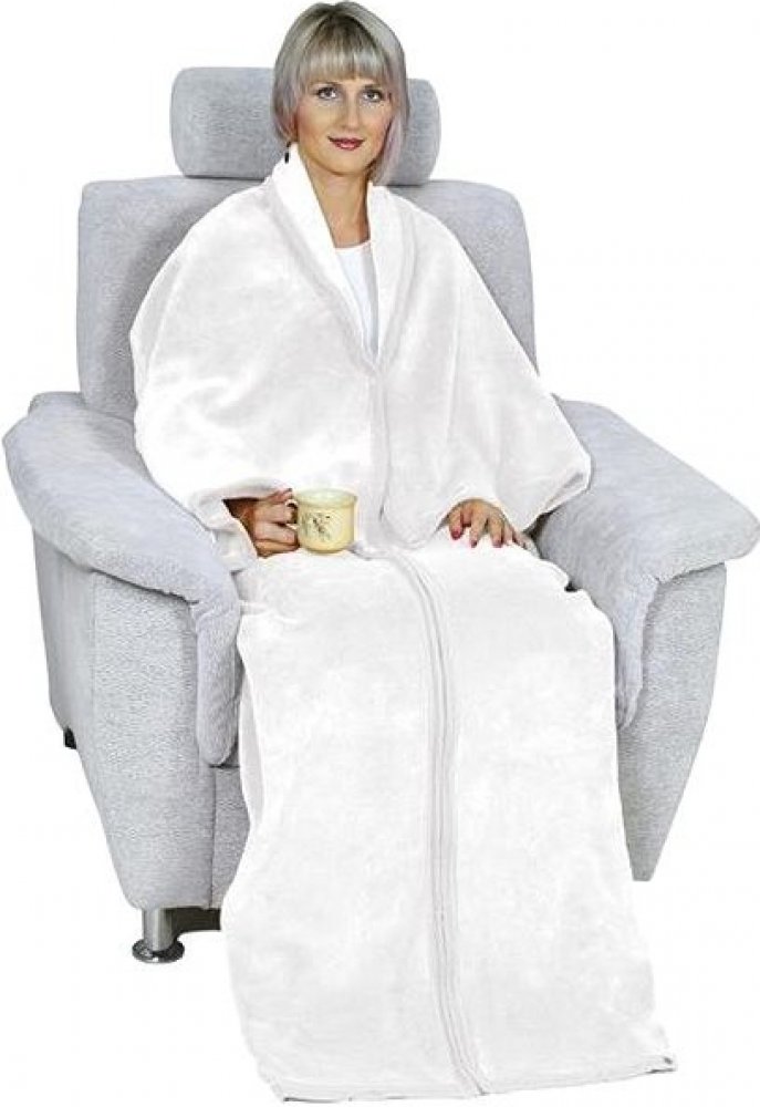 Bílý televizní pytel Korall o rozměru 150x180 cm s rukávy a límcem. Měkoučký a hřejivý televizní pytel pro zpříjemnění chladných dnů a večerů u televize nebo při lenošení s knihou.