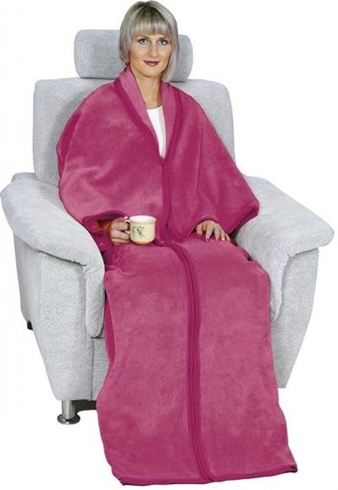 Deka s rukávy – televizní pytel, zapínání na zip a patenty, které vytvoří i rukávy. Teplá přikrývka na celé tělo pro chladné večery u televize.