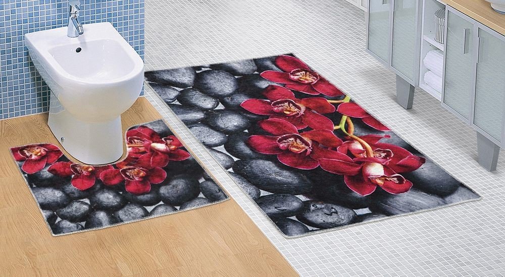 Složení: 100% polypropylen + protiskluzový latex Rozměry: podložka nevykrojená 60x100cm, podložka vykrojená WC 60x50cm Snadná údržba: lze prát do 40° Koupelnové předložky jsou opatřeny na rubové straně latexovým povrchem, který zabraňuje uklouznutí podložky na podlaze. Koupelnové předložky jsou vyrobeny ze syntetického materiálu 100% polypropylen a proto je u nich snadná údržba a nemá na ně vlhké prostředí špatný dopad. Koupelnové 3D předložky nabízíme pouze v celých dvoudílných sadách. Koupelnové předložky máme standardně na skladě a neustále je doplňujeme.