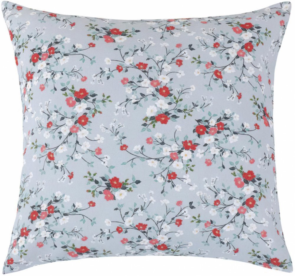 Dekorační polštářek s motivem drobných kytiček na šedém podkladu. Polštářek je z obou stran stejný. Povlak na polštářek je vyroben z 90% bavlny a 10% polyesteru a výplň je tvořena ze 100% Polyesteru (kuličky z dutého vlákna). Vnitřní výplň je možné vyjmout a prát povlak samostatně.