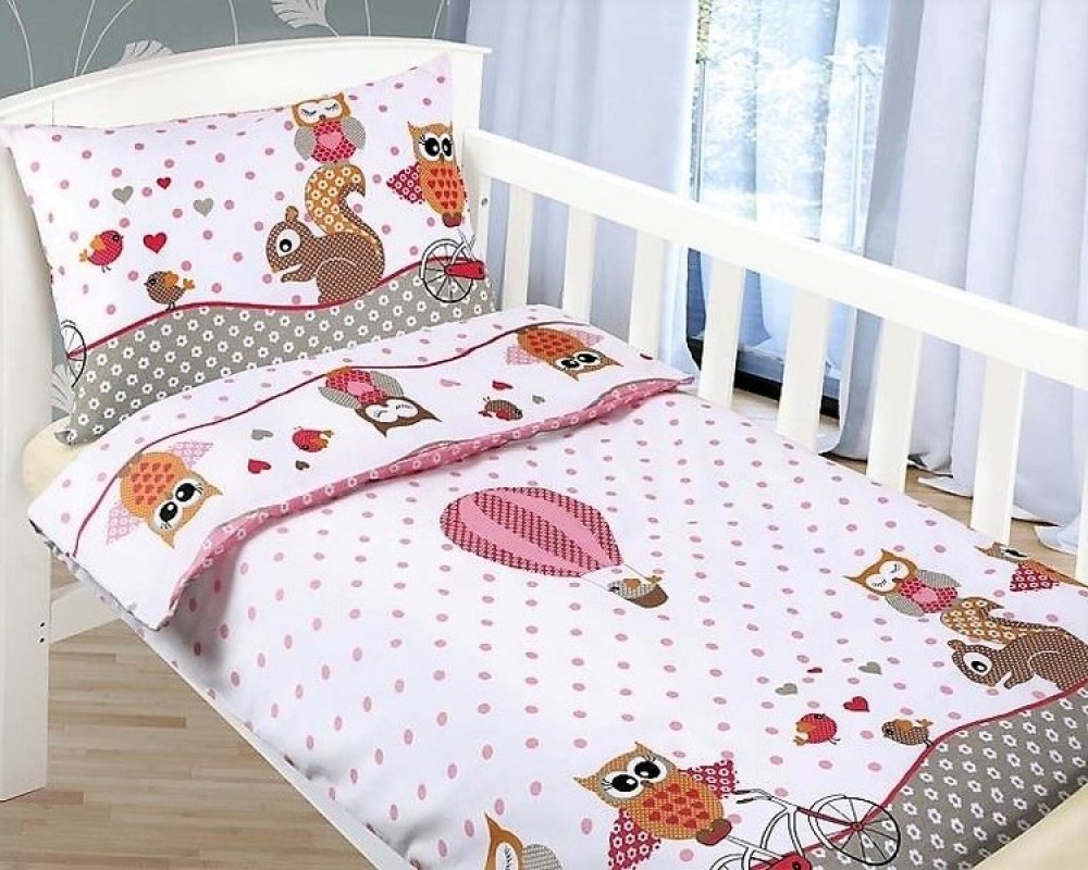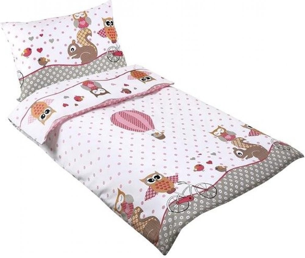 Bellatex růžová 2 100% bavlna Agáta sovičky pro holky 45 x 60 cm 90 x 135 cm do dětské postýlky
