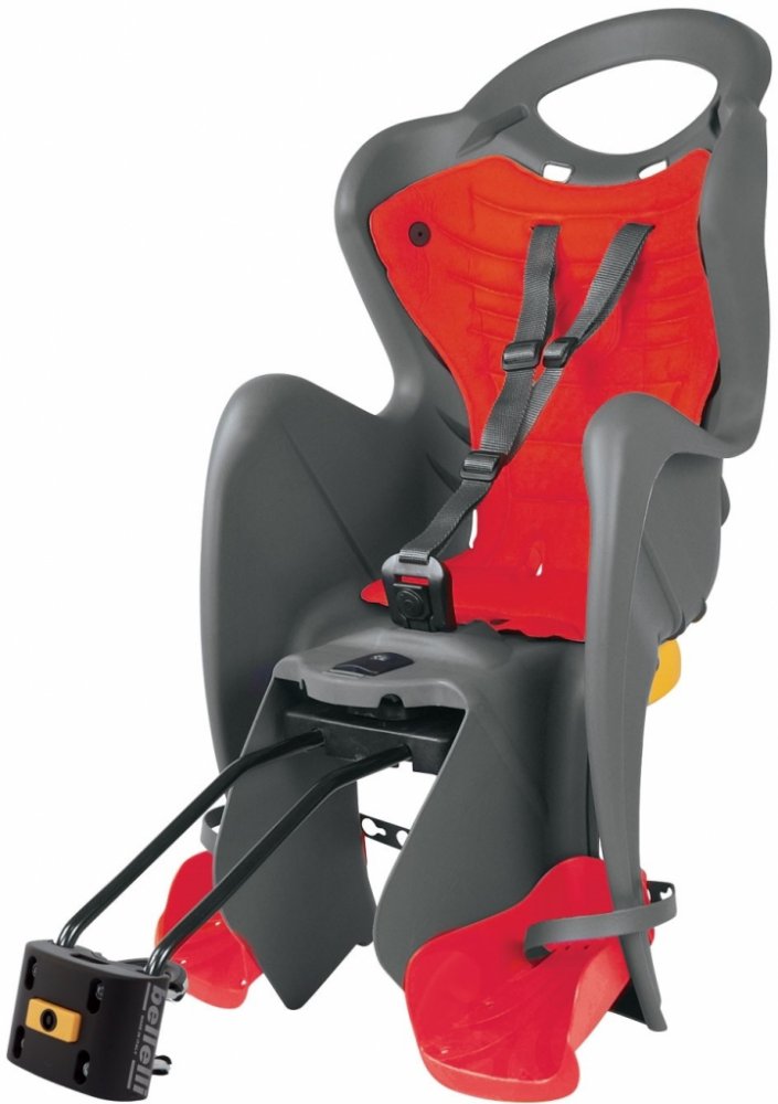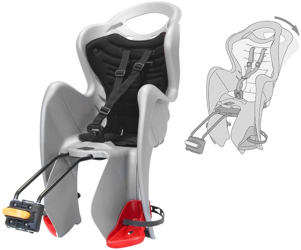- Upevnění na kolo: držák na sedlovou trubku, který umožňuje velmi rychlou montáž a demontáž sedačky na rám kola.