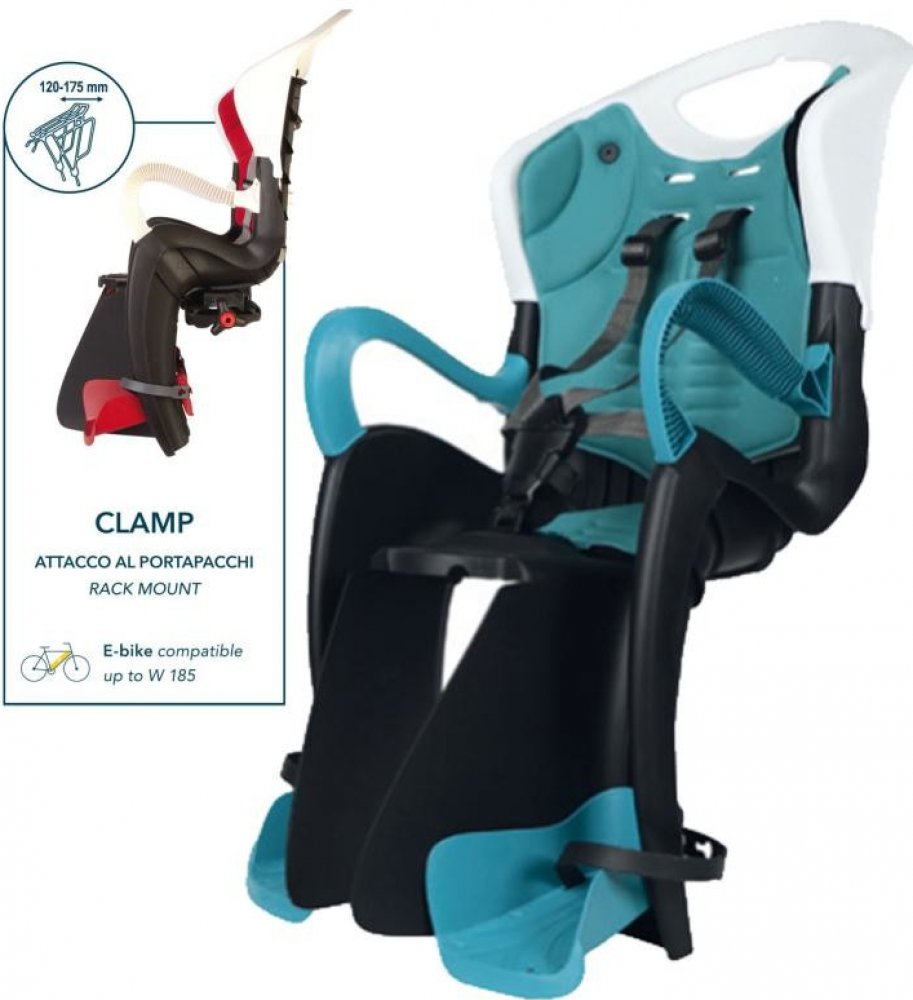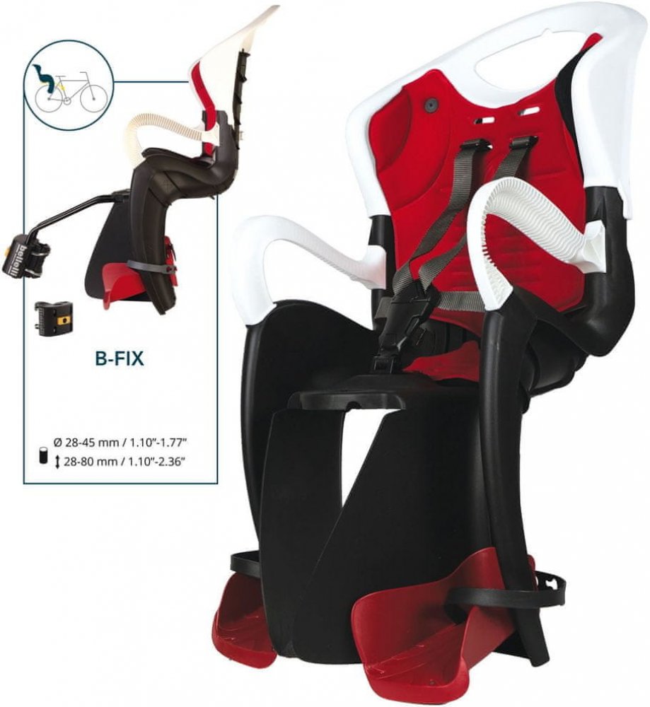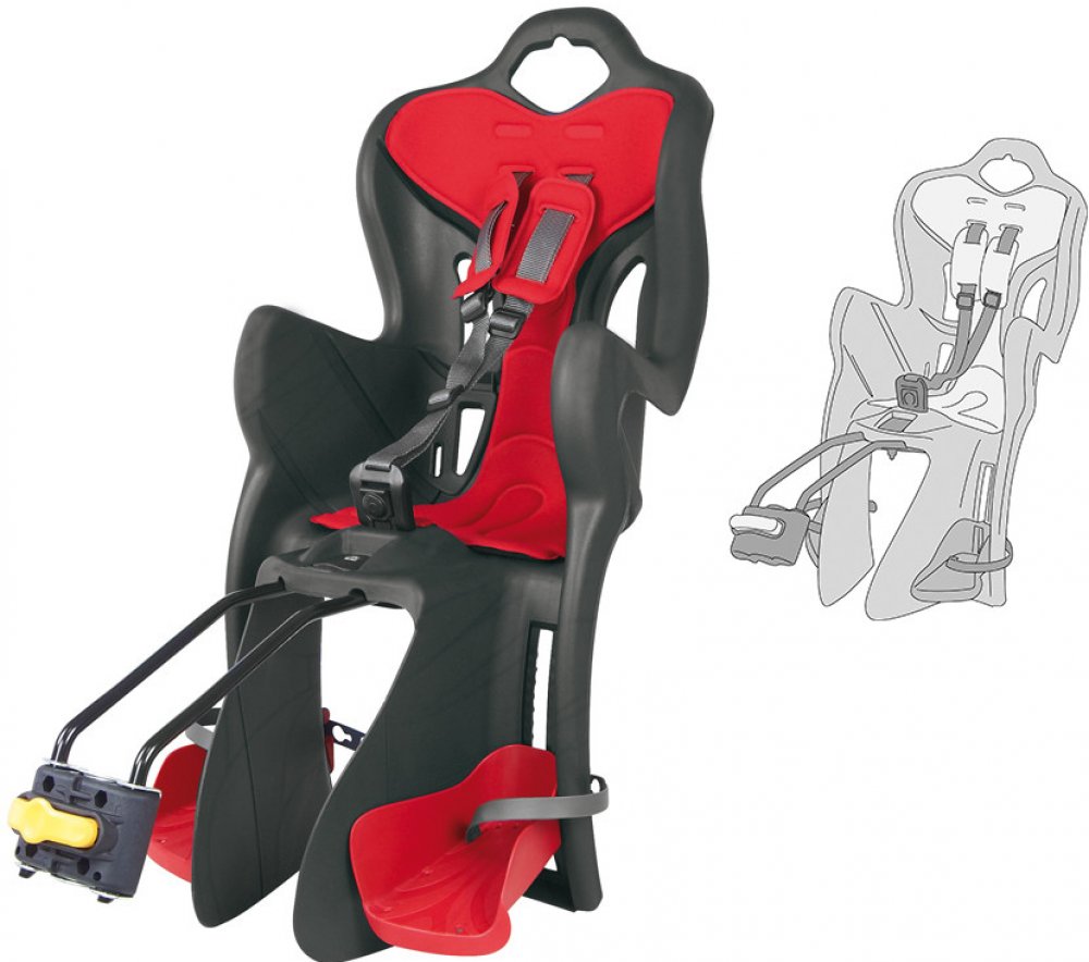 - Upevnění na kolo: držák na sedlovou trubku, který umožňuje velmi rychlou montáž a demontáž sedačky na rám kola.