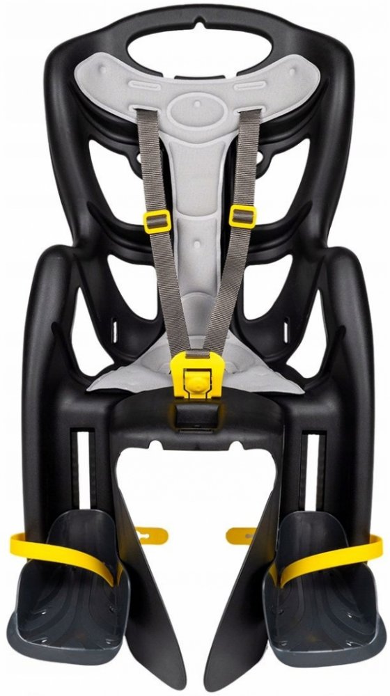 Bezpečnostní pásy se uvolňují a zapínají jednou rukou. Široké boky s stupačkami s bezpečnostními popruhy, které chrání nohy dítěte před zachycením do paprsků kola.