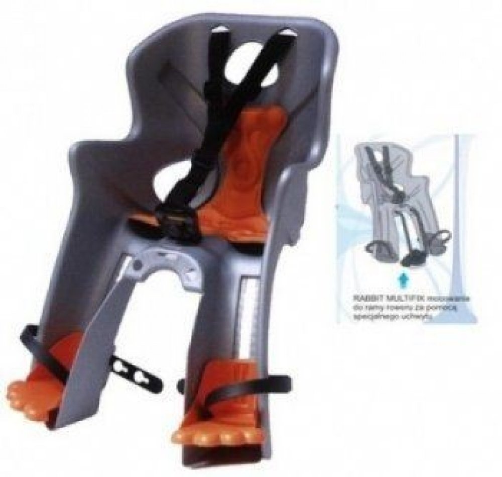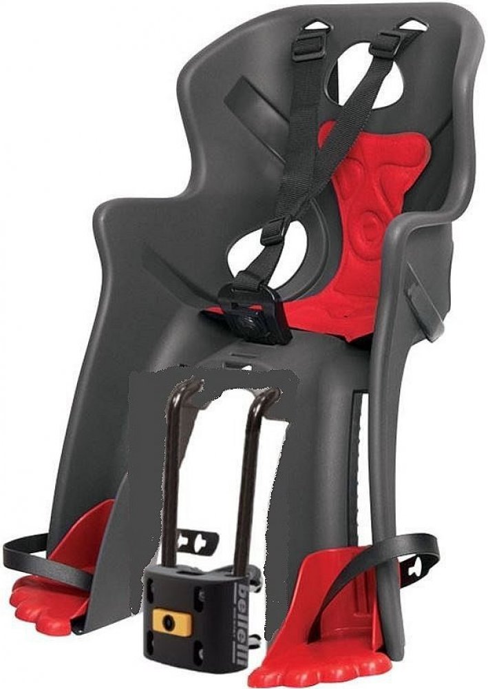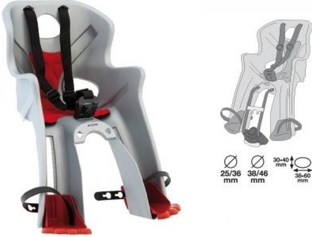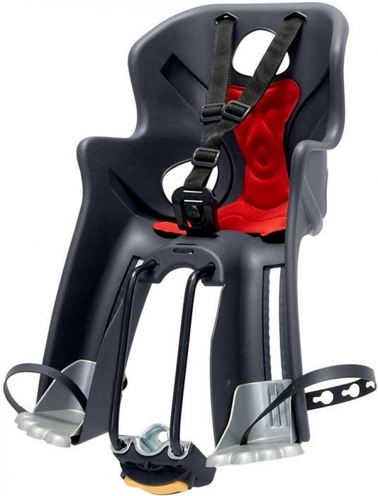 - Upevnění na kolo: držák na spodní (šikmou) rámovou trubku, který umožňuje velmi rychlou montáž a demontáž sedačky na rám kola.