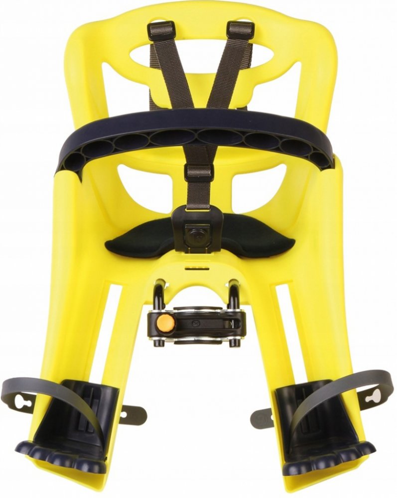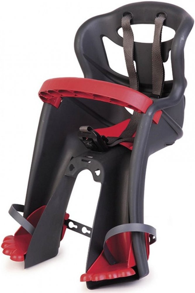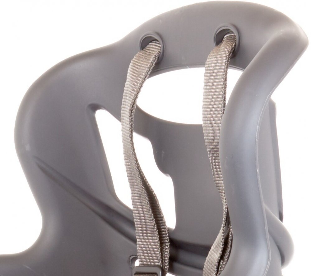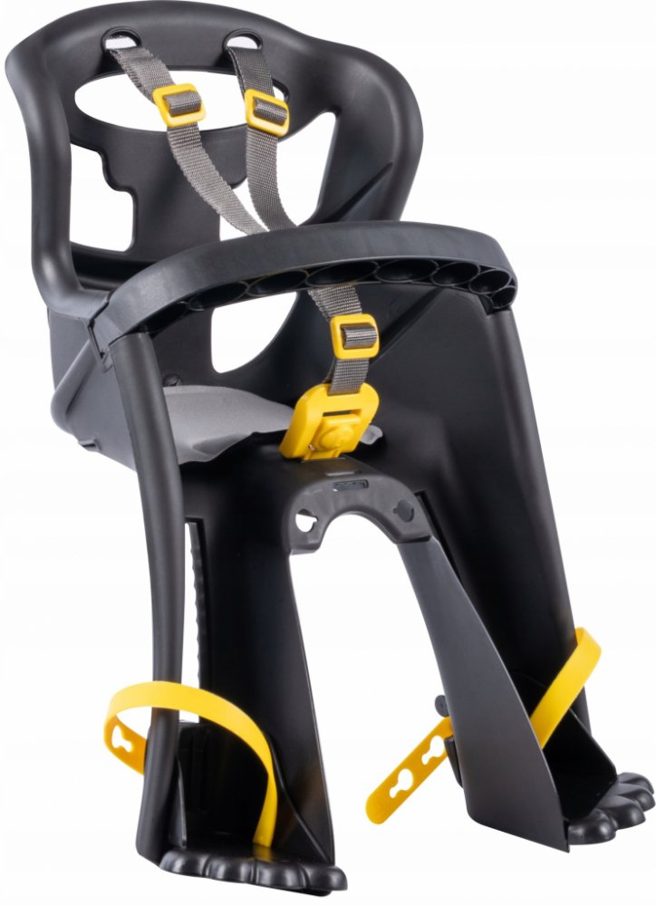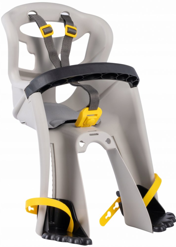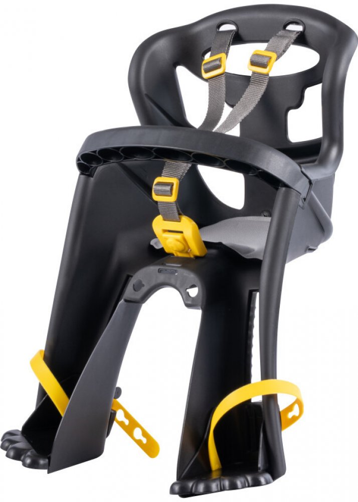 Sedačka je vybavena velkými zadními větracími otvory, které zajišťují optimální cirkulaci vzduchu, a měkkým omyvatelným polštářem pro snadnou údržbu. Bezpečnostní pásy jsou doplněny o extrémně pohodlnou přezku, která umožňuje snadné zapnutí a vypnutí jednou rukou. Sedačka nabízí plynulé nastavení výšky stupaček v 11 polohách a velké ochranné zábrany, které efektivně chrání nohy před dotykem s paprsky kola.