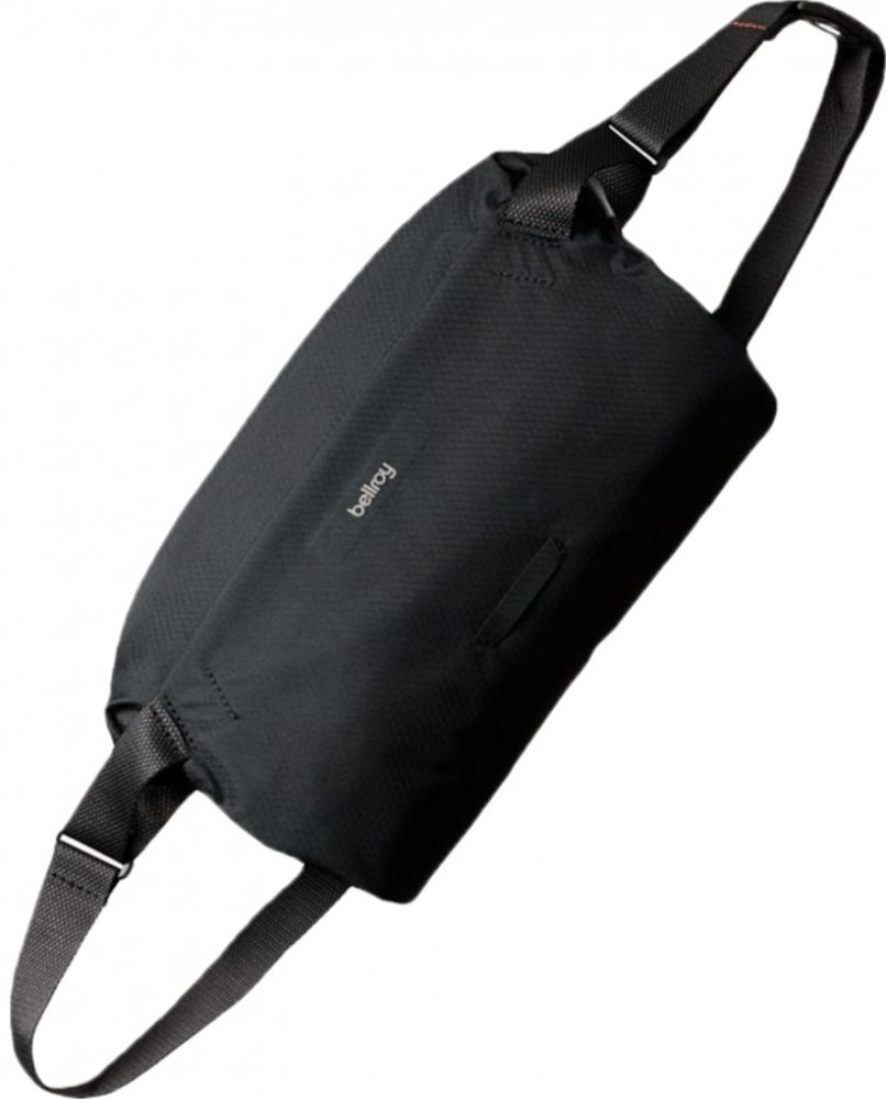 Taška nabízí hlavní úložný prostor s rozšířitelnou kapacitou, kterou zajišťuje samo-stlačitelný klínek. Přední kapsa je vybavena praktickými přihrádkami a klipem na klíče, což usnadňuje organizaci malých předmětů. Hlavní kapsa má speciální přihrádku na brýle, která je vyvýšená, aby se předešlo poškrábání. Díky voděodolným zipům se snadno uchopitelnými taháčky je obsah chráněn i před nepříznivým počasím. Popruh je vybaven magnetickým uzávěrem, který umožňuje snadné sundání i nasazení tašky. Zadní panel je polstrovaný pro pohodlí při nošení, což oceníte zejména při delších cestách. Dalším praktickým detailem je integrovaný úchyt na cyklistické světlo a speciální kapsa pro Apple AirTag, která usnadňuje sledování tašky.