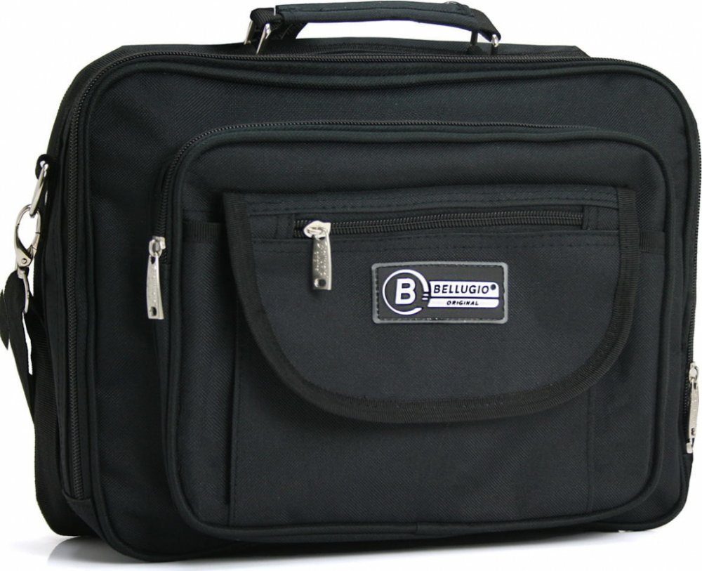 Středně velká, látková, černá, pánská taška, značky Bellugio. Nosit ji můžete přes rameno nebo crossbody. Je velmi lehká, praktická a veškeré osobní věci se Vám do ní vejdou s přehledem. Nabízí kapsu se suchým zipem a čtyři kapsy na zip. Zadní úložiště se ještě dělí přepážkou na dvě. Je měkká s možností pevnějšího dna a na spodní straně jsou plastové cvoky, tedy je i stabilní. Popruh je látkový s ...