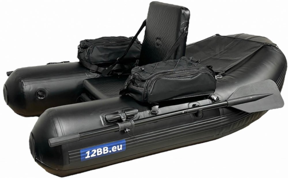 12BB Belly Boat, typ JUMBO S s pádly je "druhou největší edicí" "Customized" špičkového Belly Boatu, a proto je extrémně pevný a stabilní Belly Boat vyrobený ze silného PVC o tloušťce materiálu 1,2 mm. Belly Boat je vybaven nafukovacím sedadlem a extra nafukovacím dnem pro vysoce pevné usazení.