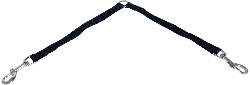 Nylonová rozdvojka v černé barvě. Vhodné pro střední psy. Rozdvojka slouží k připnutí vodítka, na procházku se dvěma psy. Nylonový popruh, kovové oko a kovové karabiny. Délka je vč. karabiny.