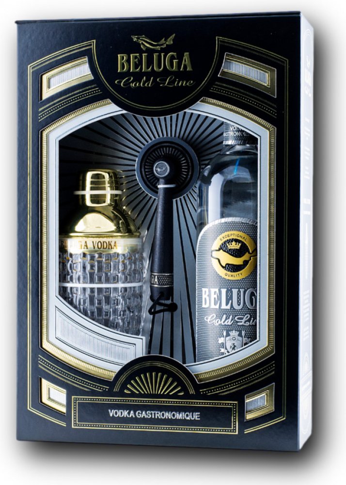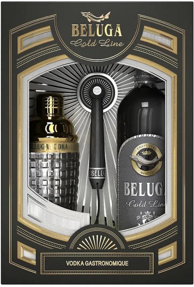Beluga Gold Line představuje klenot značky určený skutečným znalcům. Vyniká komplexní, jemnou, jiskřivou chutí. Umění, řemeslo a dokonalost se odráží v každé jednotlivé láhvi. Vyrábí se v Černé Hoře z obilí pocházejícího z ekologického zemědělství a nejčistší artéské vody. Prochází šestinásobnou filtrací - dvakrát přes křemičitý písek, třikrát přes uhlíkový filtr obohacený stříbrem a nakonec ještě jednou přes křemík. Před lahvováním ještě 90 dní odpočívá, což umocňuje její jemnou chuť. Ve vůni se projevují jemné tóny obilí, pšenice a horských bylin. Chuť je jemná, s vyváženou texturou a nepatrnou sladkostí. Nejlépe si ji vychutnáte vychlazenou na 10-12°C ve spojení s černým kaviárem, červeným masem nebo červenými rybami. Originalitu obsahu podtrhuje exkluzivní balení. Lahev uzavírá korek zalitý voskem, proto u každé lahve najdete i kladívko a štětec pro jeho rituální odstranění. Každou lahev zdobí elegantní symbol značky – kovová vyza velká, největší druh ryby z čeledi...
