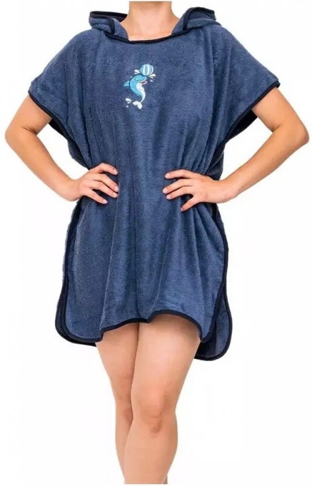 Dětské froté pončo v tmavě modré barvě s výšivkou delfína.