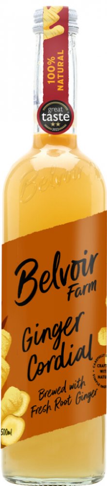 Belvoir Fruit Farms - Cordial 0.5 l tekutý koncentrát kořeněné a zázvorové 3.0 % 4.2 g per 100 ml 1:10 ve skleněné láhvi se standardním obsahem cukru 18.0 kcal per 100 ml skutečné ovoce