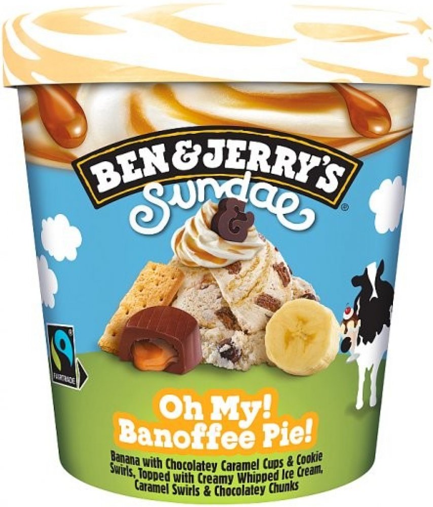 -- Ben & Jerry's Banoffee Pie Sundae je další novinkou v řadě Sundaes. Tato zmrzlina s banánem a sušenkovým krémem je také plná karamelových kousků v kakaové polevě a završená našlehanou krémovou zmrzlinou s karamelovým toppingem a kousky s kakaových…