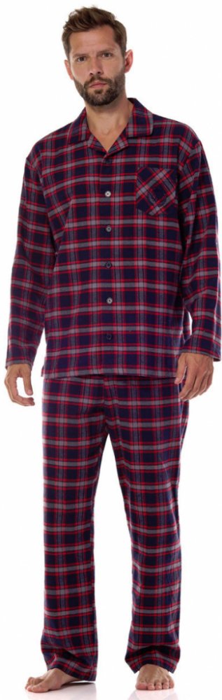 Pánské pyžamo Ben je vyrobené z kvalitního flanelu a má stylovou výšivku na boku s královským znakem. Pánské pyžamo je vyrobené ze 100% bavlny typu flanel. Má dlouhé rukávy a je propínací. Na boku je náprsní kapsička zdobená písmenem W a královskou korunou. Pyžamo má káro vzor v modro-šedo-červeném provedení.