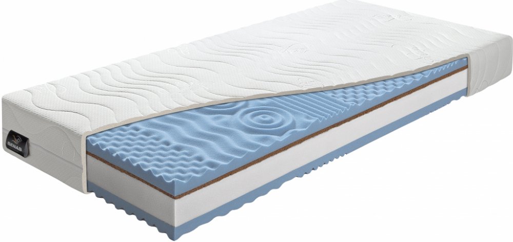 Tento materiál je profilovaná polyuretanová pěna o hustotě 28 kg/m³. Je navržena se 7 zónami tuhosti, které přizpůsobují podporu různým částem těla. Profilování pomáhá udržovat tlak na klouby a zajišťuje rovnoměrné rozložení hmotnosti. Kokosová vrstva je přírodní materiál, který se často používá ke zlepšení pevnosti a ventilace matrace. Tento materiál je vyroben z kokosových vláken , která jsou hustá a pružná, poskytují tuhost matrace a odolnost. PUR jaderná matrace je vyrobena z polyuretanové pěny o hustotě 30 kg/m³. Tento materiál je známý svou pevností a dlouhodobě trvanlivostí. Máte -li potíže s bolestmi zad nebo kloubů, pěnová matrace může pomoci zlepšit vaši polohu během spánku a ulevit od bolesti. Potah obsahuje stříbro ideální při alergii na prach a při problémech s nadměrným pocením antistatické, antibakteriální, antimykotické vlastnosti, zabraňuje růstu plísní, je odzipovatelný a pratelný do 60 °C.