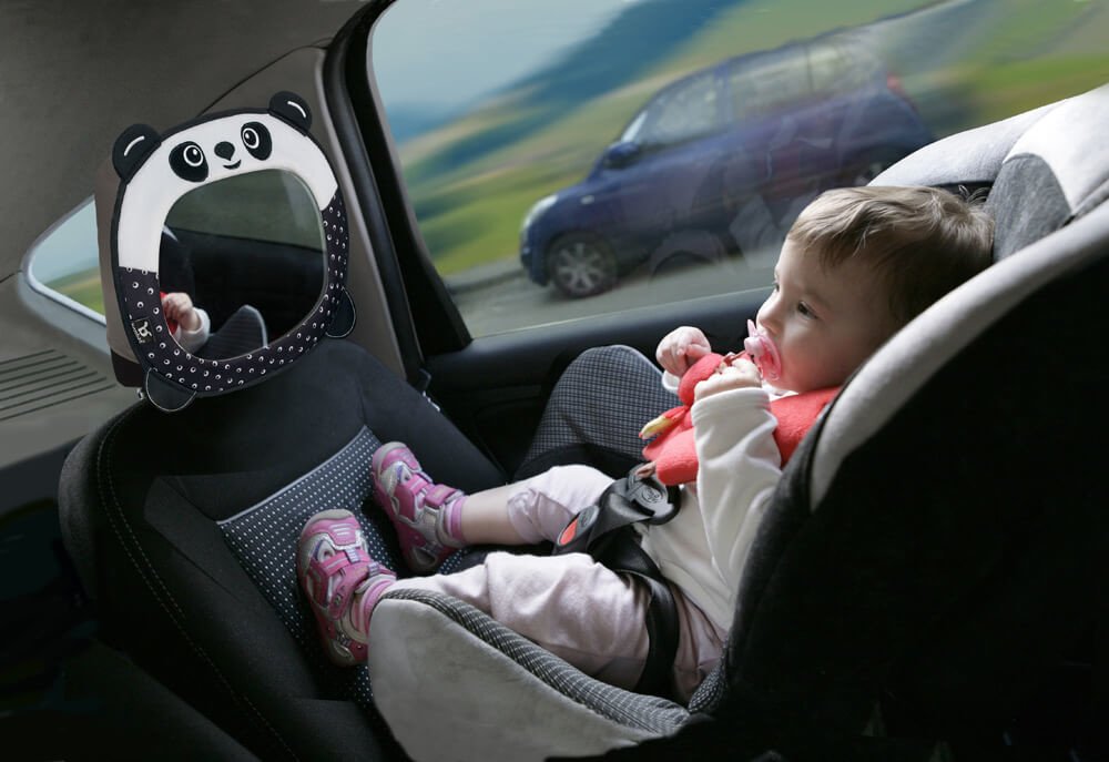 Zrcadlo do auta, které vám umožní bezpečně kontrolovat vaše dítě sedící vzadu během jízdy. Vaše děťátko si užívá jízdu s roztomilým cestovním kamarádem, který mu dělá společnost.