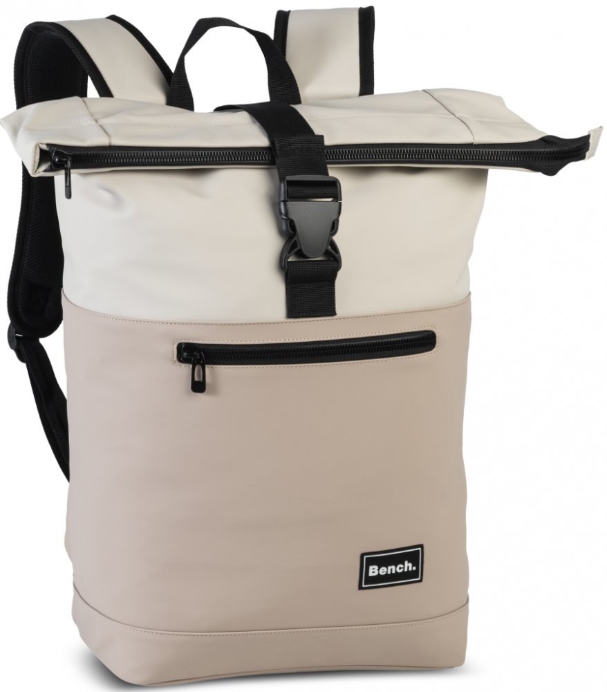 Batoh anglické značky Bench Hydro roll-top v kombinaci šedohnědé a pískové barvy, velmi kvalitní novinka s módním a praktickým zavíráním nejen pro mladistvé, vhodné pro každý den i na cestování.
