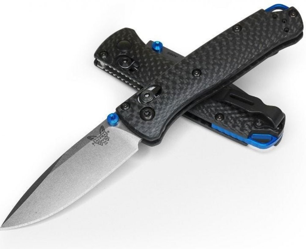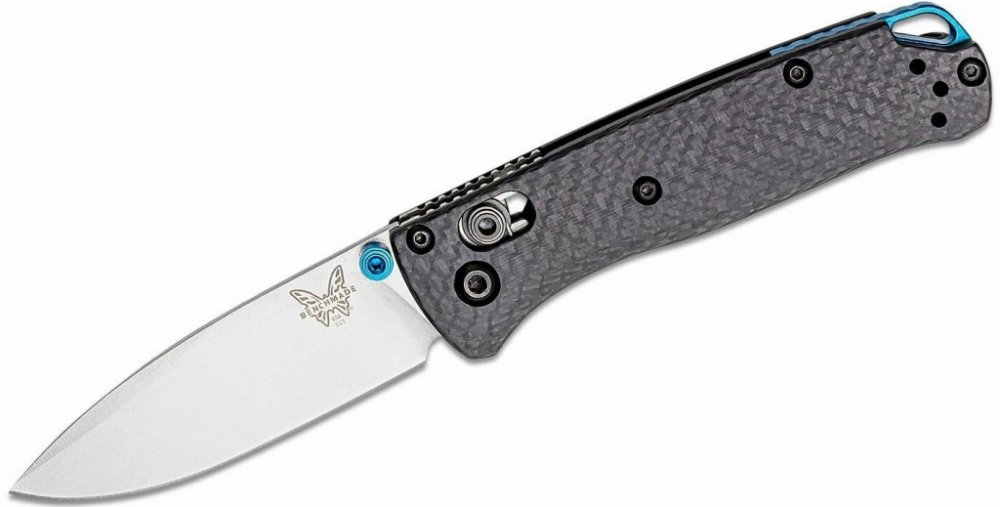 Po vzoru svého většího protějšku 533-3 přechází k rukojeti CPM-S90V ze super oceli a frézovaných uhlíkových vláken, která má zadní rozpěrku z modrého eloxovaného hliníku a modré kolíky na palec.