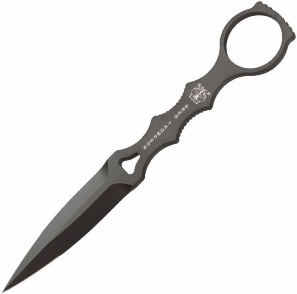 Konstrukce typu full-tang, tedy provedení z jednoho kusu oceli, zpevňuje nůž a zaručuje jeho odolnost i v těch nejnáročnějších bojových situacích.
