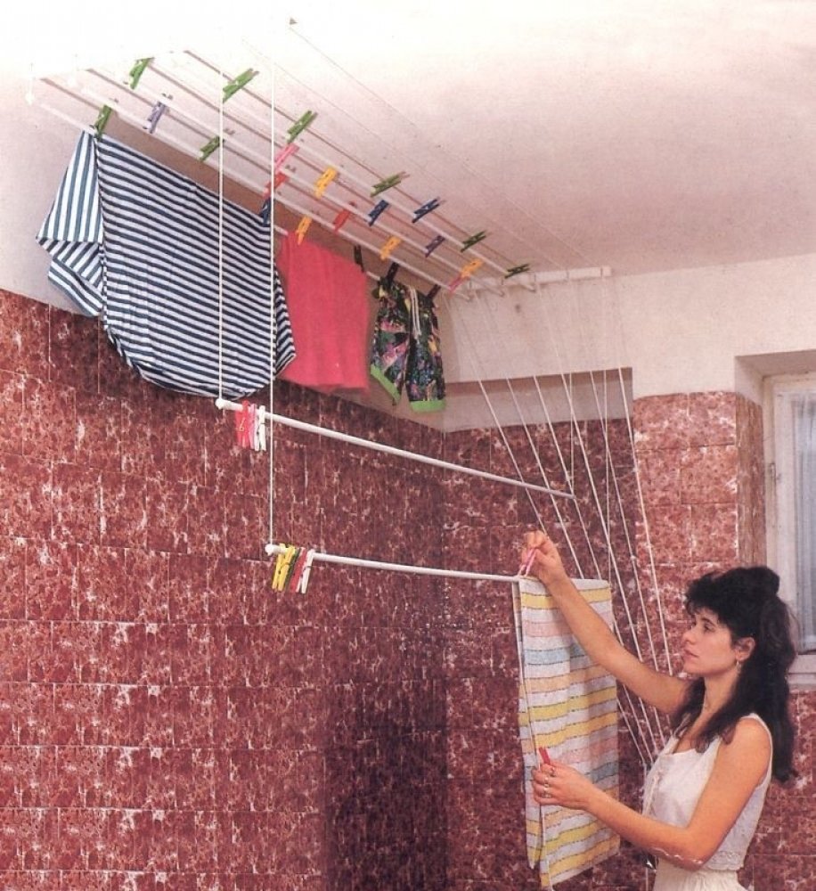 Stropní sušák se spouštěcím systémem.