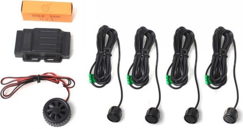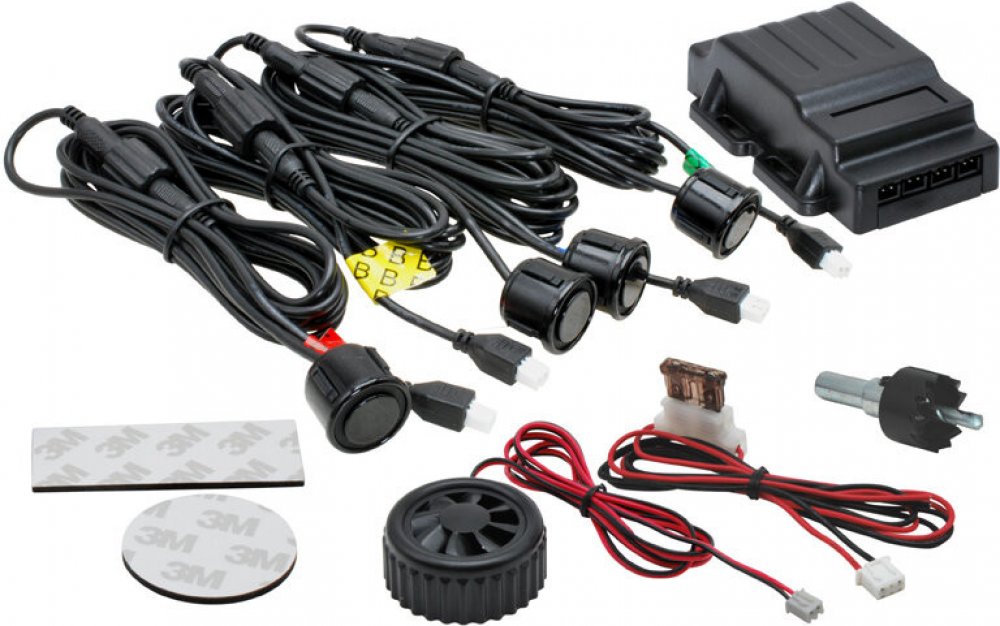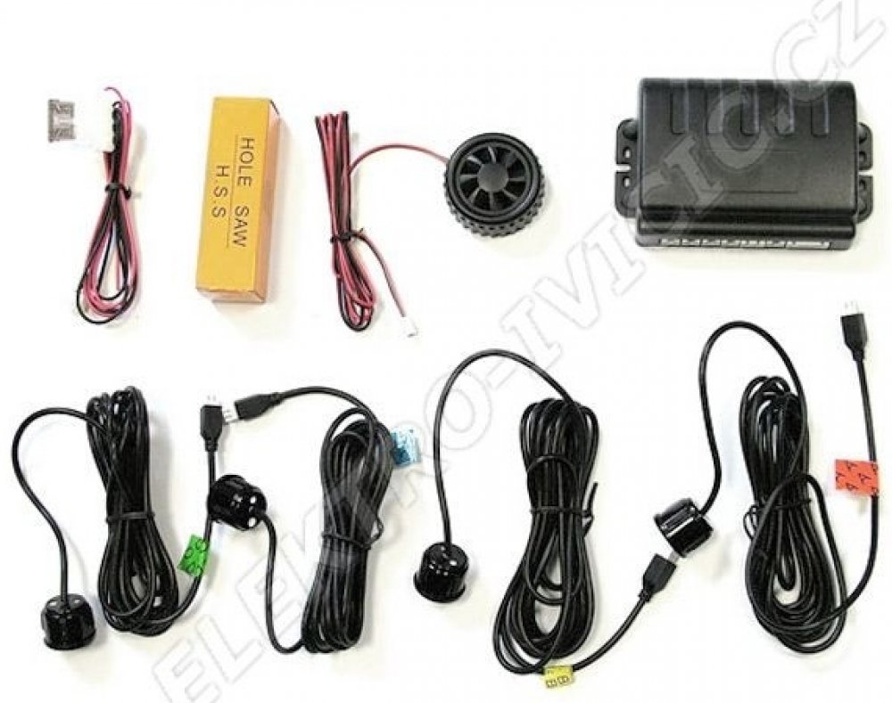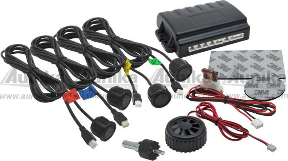 Parkovací asistent BENE se 4 senzory 20mm, určený pro instalaci do zadního nárazníku vozidla. Pomocí změn akustického signálu upozorní na překážku za vozidlem.