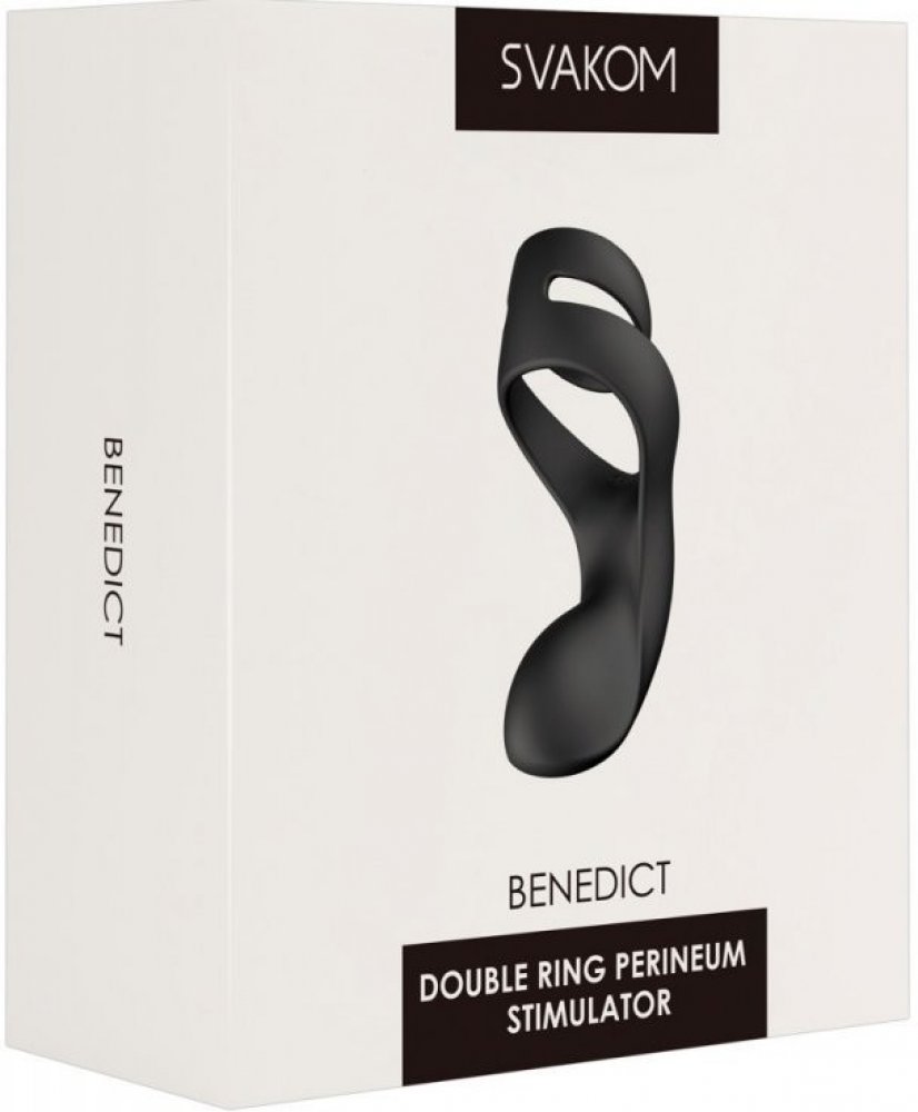 Benedict od Svakomu je kombinovaný erekční a míčkový kroužek, který má perineální vibrátor v nádherném anatomickém tvaru. Kroužek a vibrátor perfektně sedí. Je také velmi ohebná a flexibilní, což znamená, že se také pohodlně nosí. Pevný střih znamená, že může podporovat erekci pro dlouhotrvající výkon při sexu. Hluboké vibrace perinea vibrátoru neúnavně potěší perineum (mezi řitním otvorem a šourkem), takže osoba, která jej používá, může zažít intenzivní vyvrcholení!