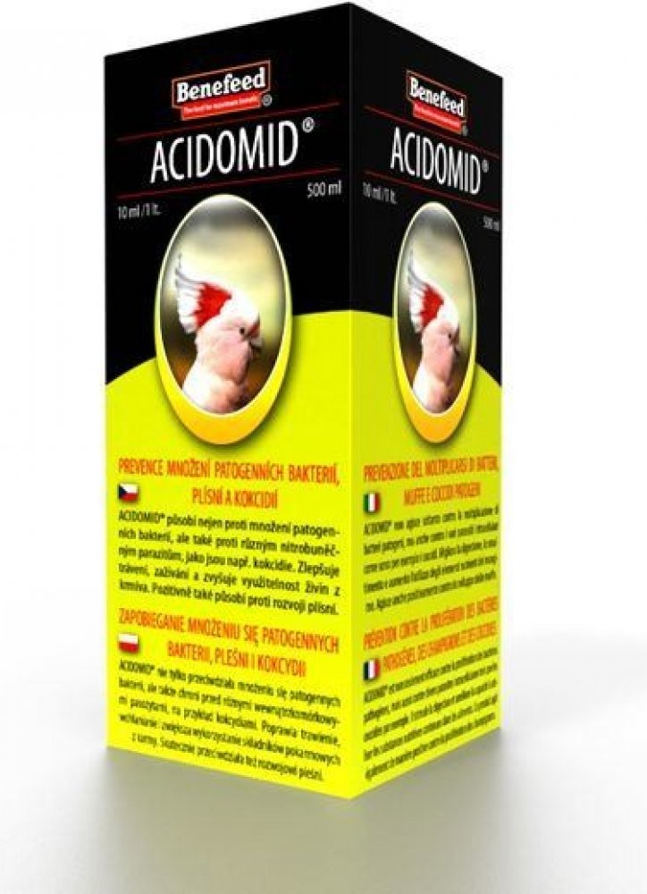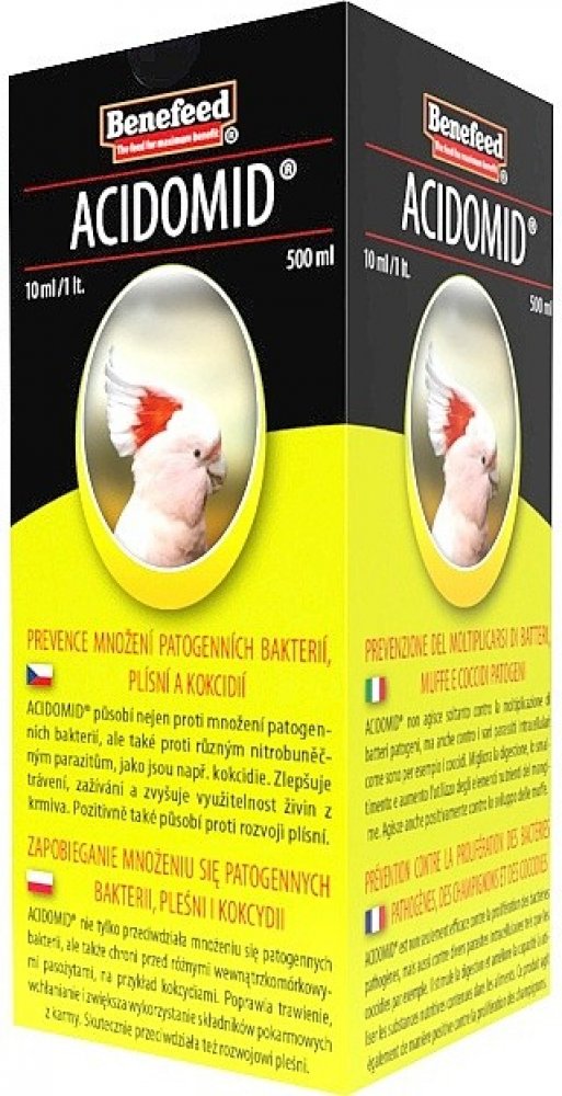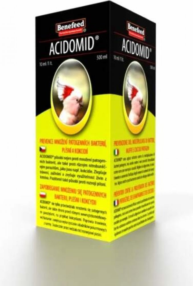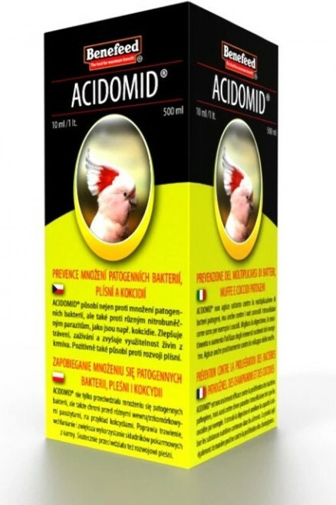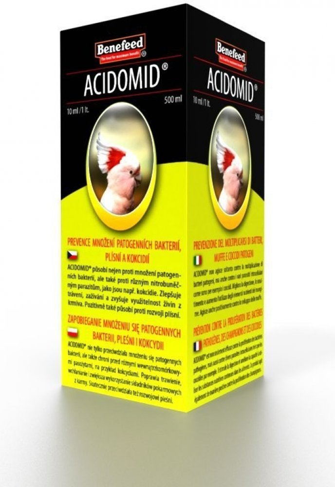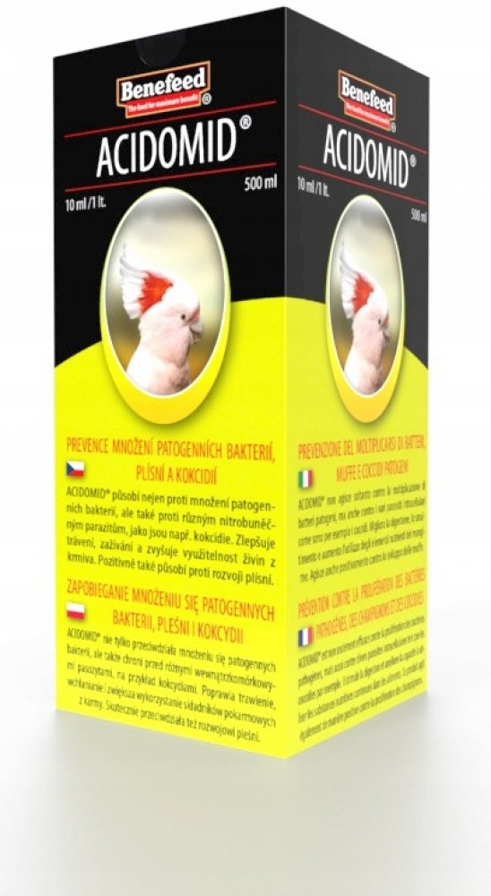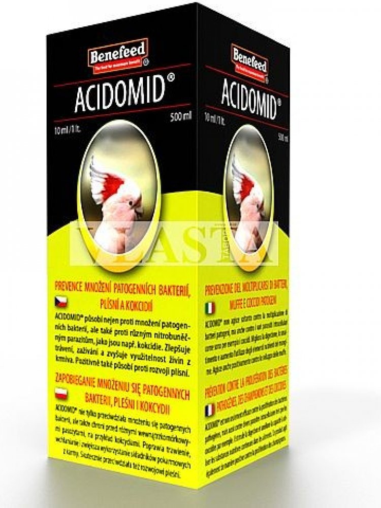 ACIDOMID® je špičkový výrobek moderní koncepce působící nejen proti množení patogenních bakterií, ale velice dobře také tlumí rozvoj a množení nitrobuněčných parazitů jako např. kokcidií. ACIDOMID® však není léčivo, neobsahuje ani kokcidiostatika a nezanechává tak rezidua v organismu. Nemá také ochranné lhůty.