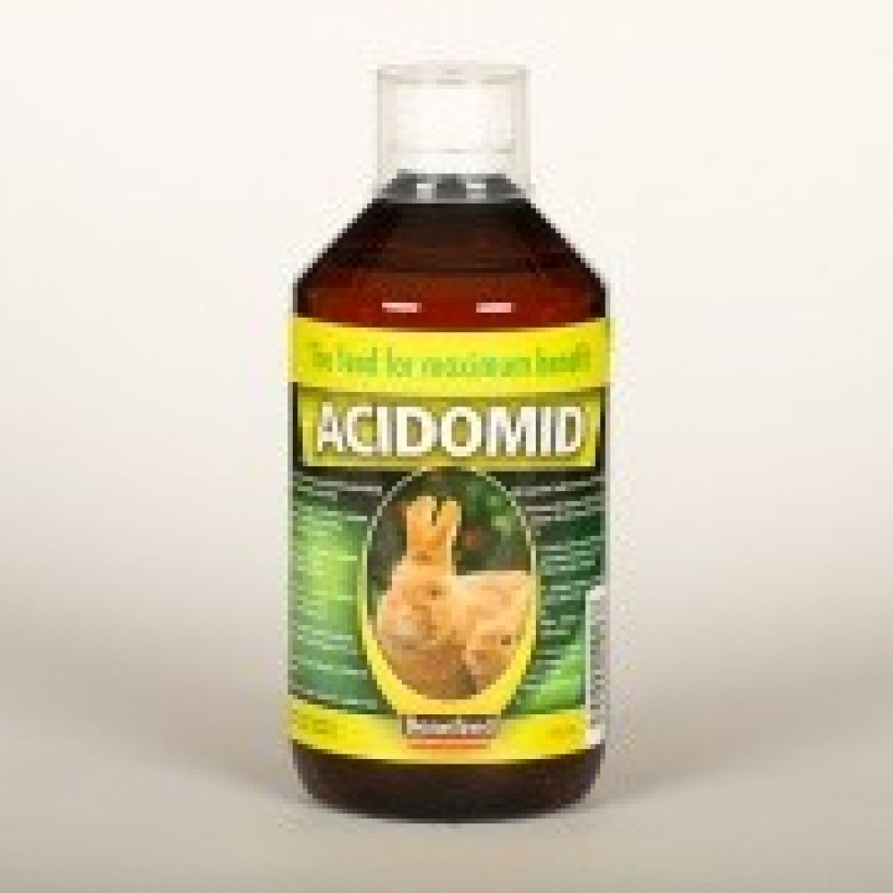 ACIDOMID® je špičkový výrobek moderní koncepce působící nejen proti množení patogenních bakterií, ale velice dobře také tlumí rozvoj a množení nitrobuněčných parazitů jako např. kokcidií. ACIDOMID® však není léčivo, neobsahuje ani kokcidiostatika a nezanechává tak rezidua v organismu. Nemá také ochranné lhůty.