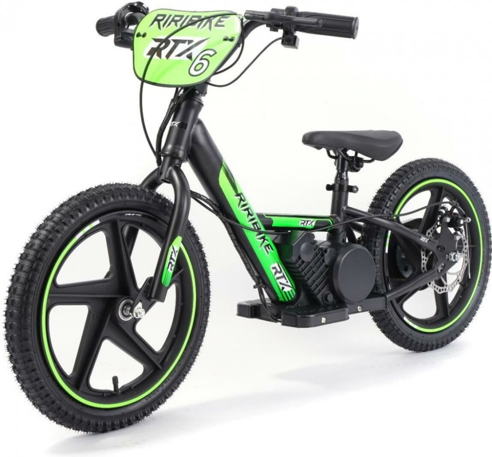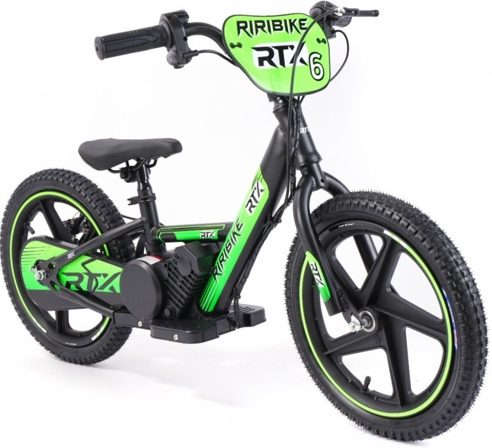 Dětské elektrické odrážedlo RIRIBIKE RTX6 24V Výkon motoru: 250W Velikost 16" RTX je modelové označení série elektrických odrážedel RIRIBIKE, které fungují na stejném principu jako elektrické kolo, avšak bez pedálů, pouze na elektrický pohon kontrolovaný přes akcelerátor na řídítku. Tento typ vozidla je odrážedlem i elektrickou motorkou v jednom. Riribike těží z nejnovějšího vývoje, který trh nabízí s lithiovou baterií. Je opravdu snadno ovladatelný a velmi komplexní, ideální pro vyvinutí a rozvoj jízdních schopností dětí ve věku 2 až 6 let. Věková kategorie 5-7 let: Používejte výhradně v režimu s pomalou elektrickou asistencí (9 km/h) Věková kategorie 7-12 let: Může se používat v režimu s vysokorychlostní elektrickou asistencí (19 km/h) Pro zkušenější: Maximální rychlost 24 km/h Tento model je vybaven 16palcovými koly s motorem (250 Wattů) a 5,2Ah baterií.RTX je ultralehký, speciálně navržen pro děti s hmotností do 38 kg.Pro začátek se doporučuje vyzkoušet odrážedlo bez elektrické asistence pro pořízení jízdních schopností a vyvážení při volnoběhu.Později lze používat elektrickou asistenci v režimu nízké rychlosti (9 km/h) s tím, že si dítě vyloží nohy na opěrky a zároveň volantem koriguje rovnováhu. Ovládání je jednoduché, stačí zmáčknout akcelerátor pro zrychlení. Po nacvičení základních jízdních dovedností a úspěšném udržení rovnováhy v režimu nižší rychlosti může vyzkoušet vyšší rychlost pomocí nastavení vysoké rychlosti (19-24 km/h).Odrážedlo RTX je vybaveno hybridními pneumatikami vhodnými pro použití na silnici i v terénu. Řetězem propojený zadní náhon poskytuje spolehlivý výkon pro snadné udržení rovnováhy i v režimu pomalé rychlosti Co se týče zpracování a materiálů, nebudete zklamáni, RIRIBIKE totiž používá k výrobě kvalitní díly s precizním vypracováním, splňující všechny potřebné směrnice a normy EU. Hliníkový rám a řídítka umožňují dostatečnou pevnost a to při hmotnosti pouhých 11 kg včetně lithiové baterie, která umožňuje používat kolo až 1 hodinu 15 minut při nepřetržitém provozu s nabíjením pouhých 4-5 hodin. Sedadlo i volant lze nastavit podle potřeby. Upozornění: Upozorňujeme, že naše modely nejsou homologovány pro použití na veřejných silničních komunikacích.
