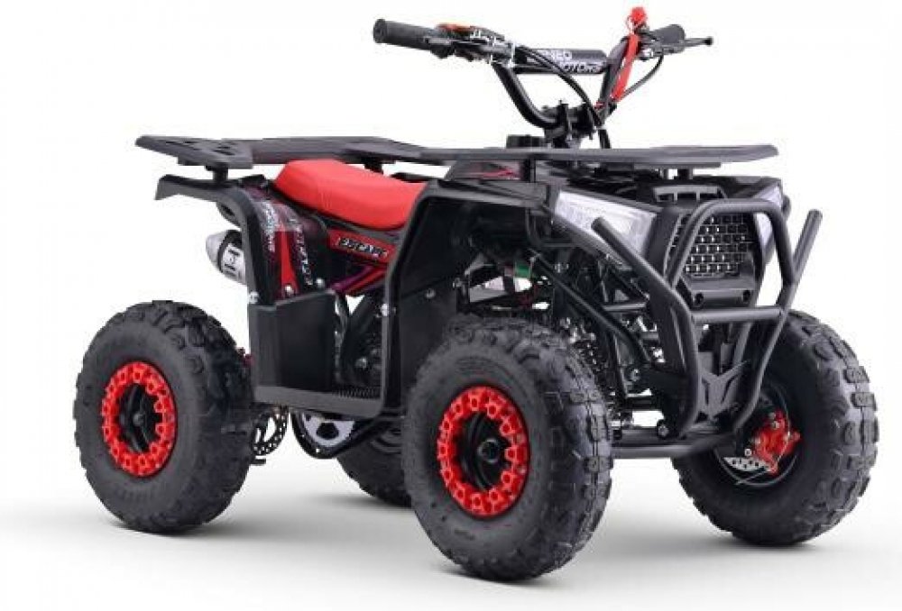 .embed-container { position: relative; padding-bottom: 56.25%; /* 16:9 Aspect Ratio */ height: 0; overflow: hidden; max-width: 100%; } .embed-container iframe { position: absolute; top: 0; left: 0; width: 100%; height: 100%; } Beneo Motors Quad Escape 49 cm³ Doporučený věk: Od 4 let+ Výkon motoru: 1,6 kW (2,15 koní) Představujeme úplně nový Pocket Quad Escape – ultimátní terénní čtyřkolku navrženou pro dobrodružství a vzrušení z jízdy, zejména pro mladší jezdce! Escape je ideální pro začátečníky i jezdce bez zkušeností, kteří touží rozvíjet nové jezdecké dovednosti a zažít vzrušení z off-roadu. Odolnost a kvalita První věc, která vynikne, je výjimečná kvalita zpracování a samotný design. Od pevného rámu a robustní přední nápravy až po elegantní povrch – tato dětská čtyřkolka je stvořena na dlouhou životnost. Nabízí spolehlivý výkon pro jezdce od 4 let, což z ní dělá perfektní volbu pro mladé fanoušky v této oblasti. 1. Bezpečnost na prvním místě! U značky Beneo Motors klademe bezpečnost na první místo. Escape je vybaven: • Odolným rámem: Navržený na zvládnutí náročného používání. • Širokým rozvorem kol a nízkým těžištěm: Snižuje riziko převrácení. • Regulací rychlosti: Omezení maximální rychlosti pomocí jednoduchého šroubového omezovače na řídítkách. • Spolehlivým brzdovým systémem: Zajišťuje citlivé a konzistentní brzdění. Escape startuje jemně a plynule, což činí učení bezpečným a podporuje sebevědomí. Rodiče mohou snadno nastavit rychlost podle zkušeností dítěte. 2. Ostrý, stylový design Se svým ostrým a sportovním designem Escape vyzařuje profesionálním vzhledem, bez náznaku „dětskosti“. Inspirován čtyřkolkami pro dospělé, jeho elegantní zpracování zaručuje, že vynikne jako prémiová čtyřkolka pro mladé, začínající jezdce. Dvě sportovní výfuky s chrániči: Naznačují výkonnost a dodávají sportovní vzhled čtyřkolce 3. Uživatelsky přívětivý a snadno ovladatelný Escape je navržen s ohledem na mladší jezdce: • Dvoutaktní motor: Rychlý, agilní a efektivní ve poměru velikosti a výkonu. • Přední a zadní kotoučové brzdy: Poskytují citlivou a spolehlivou brzdnou sílu pro bezpečnější jízdu. • Jednoduché startování tahem: Zjednodušuje startování čtyřkolky, zejména pro mladší děti. Escape kombinuje spolehlivost a jednoduchost použití, což z něj dělá jednu z nejlepších 49 cm³ čtyřkolek ve své kategorii. 4. Ideální na závody a zábavné jízdy Ať už závodíte na dvoře nebo si užíváte bláznivé terénní trasy, Escape nabízí výjimečný výkon i přes svou menší velikost. Vysokootáčkový dvoutaktní motor zajišťuje rychlé starty a plynulé jízdy i na náročném terénu. Čtyřkolka Beneo Motors Pocket Quad Escape je dokonalou kombinací bezpečnosti, stylu a výkonu pro mladé jezdce připravené začít svou jízdu v terénu! Klíčové vlastnosti • Vysokokvalitní odpružení: Vybaveno tlumiči pro pohodlnou a plynulou jízdu i na nerovném terénu. • Zesílený hliníkový startér: Navržen pro jednoduché a spolehlivé startování, ideální pro mladé jezdce. • Zesílená dvojitá spojka: Integrovaná s automatickou převodovkou pro plynulý výkon a snadné použití. • Omezovač rychlosti: Nastavitelný pomocí jednoduchého šroubu pro kontrolu maximální rychlosti, čímž zvyšuje bezpečnost při jízdě. • Prémiové pneumatiky s dobrým gripem: Navrženy pro řádnou trakci a stabilitu i na náročných terénech. • Parkovací brzda: Poskytuje dodatečnou vrstvu bezpečnosti, když je čtyřkolka nehybná. • Ochranný kryt a napínač řetězu: Chrání a udržuje správné napnutí řetězu pro optimální výkon. • Ochrany výfuku: Chrání před náhodným kontaktem pro zvýšenou bezpečnost. • Přední a zadní nosiče: Pro přenášení příslušenství Palivo a převodovka • Palivo: Benzín 95 oktanů smíchaný se 4 % oleje pro 2-taktní motory • Poměr směsi oleje: 25:1 (použijte dodanou odměrku pro přesnost, abyste předešli poškození motoru) • Převodovka: Automatická s odstředivou spojkou Rychlost a brzdění • Maximální rychlost: 40 km/h • Brzdový systém: Přední: Kotoučové - s dvěma závodními třmenyZadní: Kotoučové - s jedním závodním třmenem Kapacita palivové nádrže • 1 litr UPOZORNĚNÍ! Vždy míchejte palivo a olej v požadovaném poměru (25:1) pomocí dodané odměrky. Nedodržení tohoto postupu může vést k vážnému poškození motoru. Tento model je ideální pro méně zkušené jezdce, kombinuje stylový design s působivým výkonem. Zaručuje zábavnou a bezpečnou jízdu v terénu pro děti! Důležité tipy a pokyny Jednoduchý start Startování pocket quadu je jednoduché s EasyStart systémem startéru, který zesiluje vaši tahovou sílu pro snadné startování. Stačí jemně zatahnout za rukojeť směrem k hrudníku. Upozornění: Nevytahujte prudce, jako u křovinořezu — může to poškodit startér, opravy způsobené mechanickým poškozením nejsou kryté zárukou. Příprava před jízdou Než vyrazíte na svou první jízdu, zkontrolujte: • Tlak v pneumatikách. • Napnutí řetězu a stav oleje. • Kabeláž. • Nastavení karburátoru, aby motor běžel hladce. Nastavení volnoběhu Pokud se vaše čtyřkolka pohybuje sama od sebe, více kouří nebo nereaguje, mohou být volnoběžné otáčky motoru nastaveny příliš vysoko. • Stačí upravit otáčky šroubkem na karburátoru, abyste snížili volnoběžné otáčky. Seřízení sedadla Při nasazování sedadla na pozici postupujte opatrně, abyste nepoškodili úchyty sedadla. • Sedadlo umístěte přední částí úchytů a vzadu zacvakněte stlačením směrem dolů. Bezpečnost na prvním místě 1. Nosívejte vhodné vybave