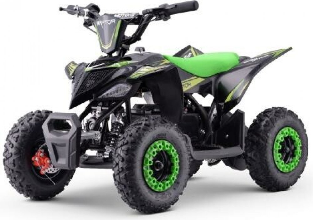 Beneo Motors Quad Raptor 800W Věková hranice: od 3 let 36V baterie Představujeme Beneo Motors Raptor – Ideální čtyřkolku pro děti od 3 do 6 let se všemi bezpečnostními prvky: 3polohový omezovač rychlosti (5-15-25 km/h), kotoučové brzdy, bezpečnostní kryt řetězu. 1. Bezpečnost na prvním místě! Bezpečnost je pro nás na prvním místě, a proto je tento model vybaven pevným a odolným rámem, širokým rozchodem kol s nízkým těžištěm, aby se předešlo převrácení, nastavitelným omezovačem rychlosti a spolehlivými brzdovými systémy. 3polohový omezovač rychlosti (5-15-25 km/h) Žádný zápach z výfuků, žádný hluk ve srovnání s benzínovými offroady. 2. Ostrý, stylový design Se svým ostrým sportovním designem Raptor nevypadá vůbec dětsky, je navržen tak, aby vynikal profesionálním vzhledem, podobně jako dospělé profesionální čtyřkolky. Jeho elegantní povrchová úprava z něj dělá ideální quad pro mladé, méně zkušené děti. 3. Uživatelky přívětivá, snadno ovladatelná S elektrickým pohonem je tento malý quad velmi svižný, obratný a snadno ovladatelný. Díky předním a zadním kotoučovým brzdám poskytuje rychlé a efektivní zabrzdění! 6palcová kola poskytují velmi dobrou manévrovatelnost a stabilitu Vhodné i pro úplné začátečníky již od 3 let 4. Jednoduchý provoz a údržbaJelikož se jedná o čistě elektrický pohon, z technického hlediska tento model nevyžaduje téměř žádnou údržbu, stačí nabít baterii, zkontrolovat brzdový systém a pneumatiky a čtyřkolka je připravena k jízdě. Doba nabíjení se odhaduje na 5 hodin s výdrží baterie 1h30min v závislosti na zatížení a terénu. Extra výbava: Vysoce kvalitní odpružení s tlumiči Přední LED reflektory pro jízdu ve tmě Automatická převodovka se zpátečkou Parkovací brzda Tři nastavitelné rychlosti Klakson Chránič řetězu Tento model je ideální zejména pro méně zkušené jezdce, je to silné a stylové ATV, které přináší zaručený zážitek z jízdy v terénu pro děti.