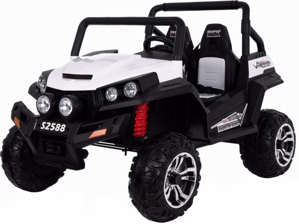 Charakteristika: Toto dvoumístné autíčko nabízí opravdu široký prostor pro dítě. Tedy pokud máte doma malého snílka, případně výmyselníčku, pak je toto autíčko stvořené pro Vás. Vybavení: Po stisknutí startovacího knoflíku se ozve startovací zvuk a rozsvítí se přední světla. Ty lze přepínat pomocí tlačítka na ovládacím panelu. Mohou svítit, blikat nebo jednoduše zůstat vypnuté. V autíčku víte nala...